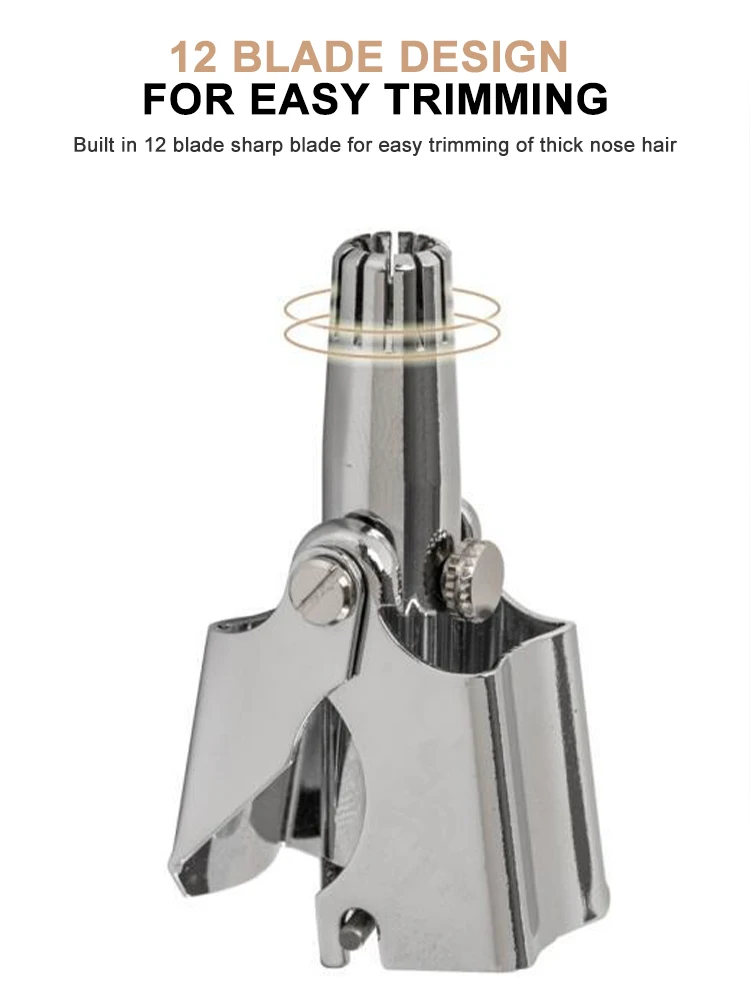 Встроенное острое лезвие с 12 краями позволяет легко обрезать толстые волоски носа.