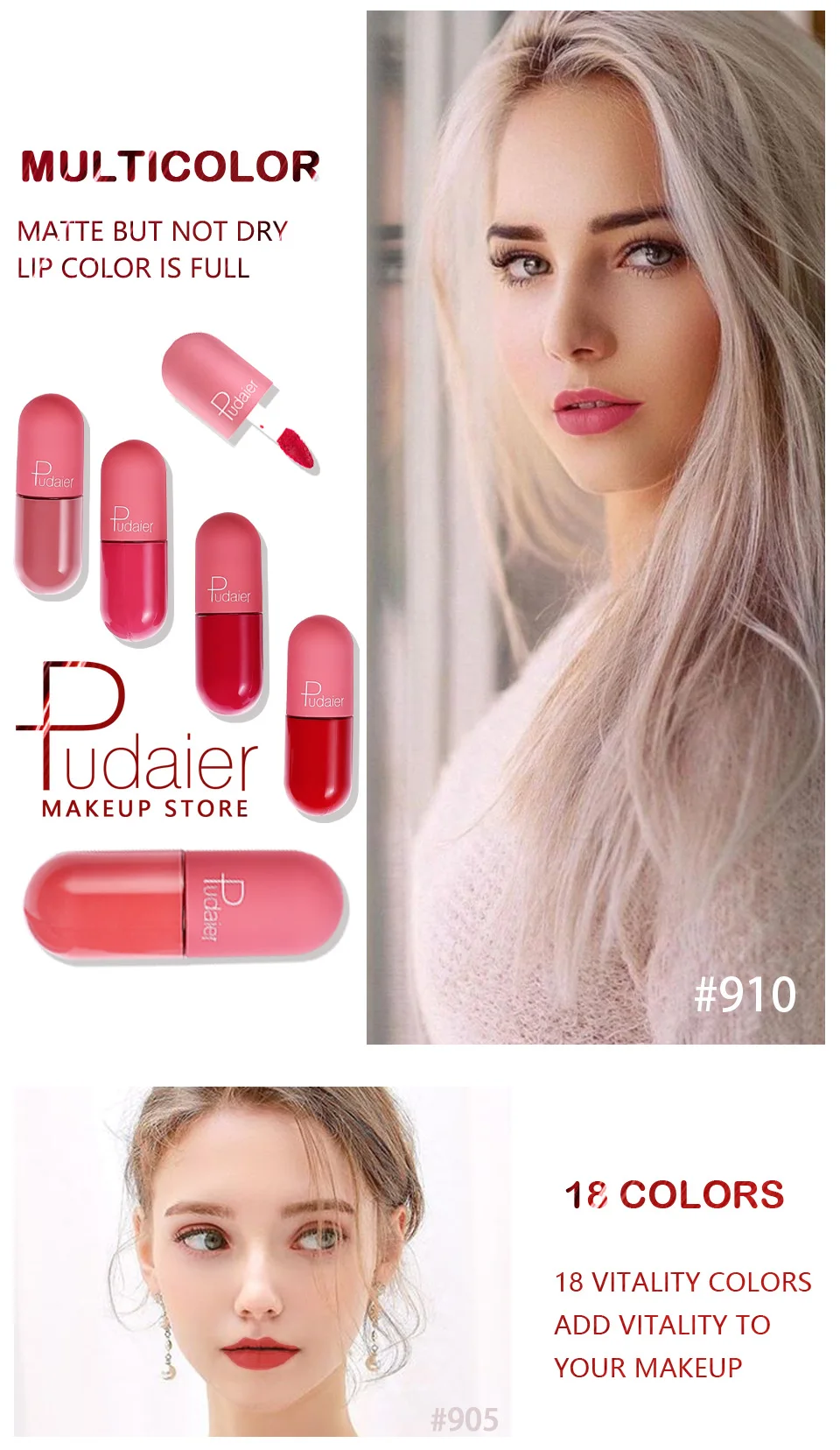 Мини-Капсульная Матовая жидкая помада Pudaier, 18 цветов, бархатный...