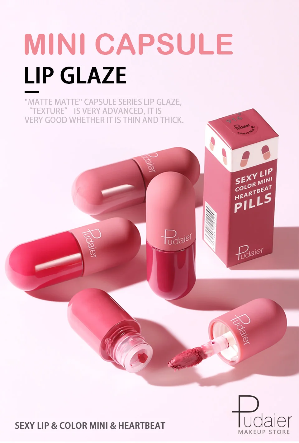 Матовая жидкая помада Pudaier, водостойкий профессиональный макияж, полностью портативный глянцевый блеск для губ для макияжа, ТИНТ, блеск для губ, мини-косметика