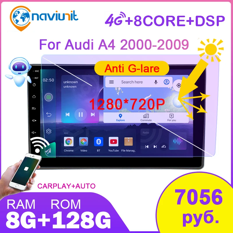 Naviunit магнитола 2 din android 10 с экраном автомагнитола, интеллектуальная система для Audi A4 S4 RS4 B6 B7 Seat Exeo 2002-2012 с видеоплеерами Carplay автомобильная магнитола аудио аксессуары bluetooth-динамик IPS