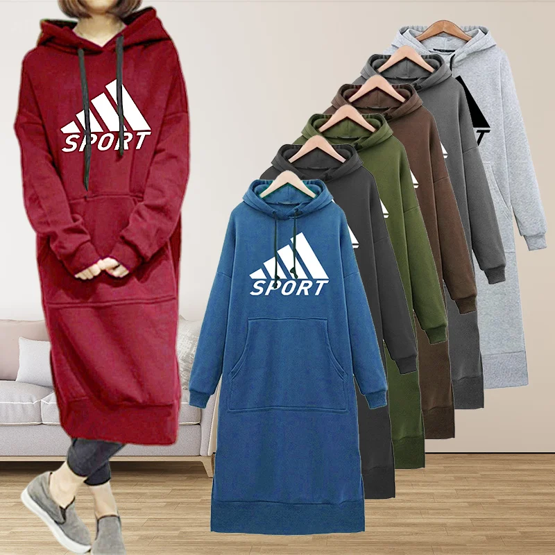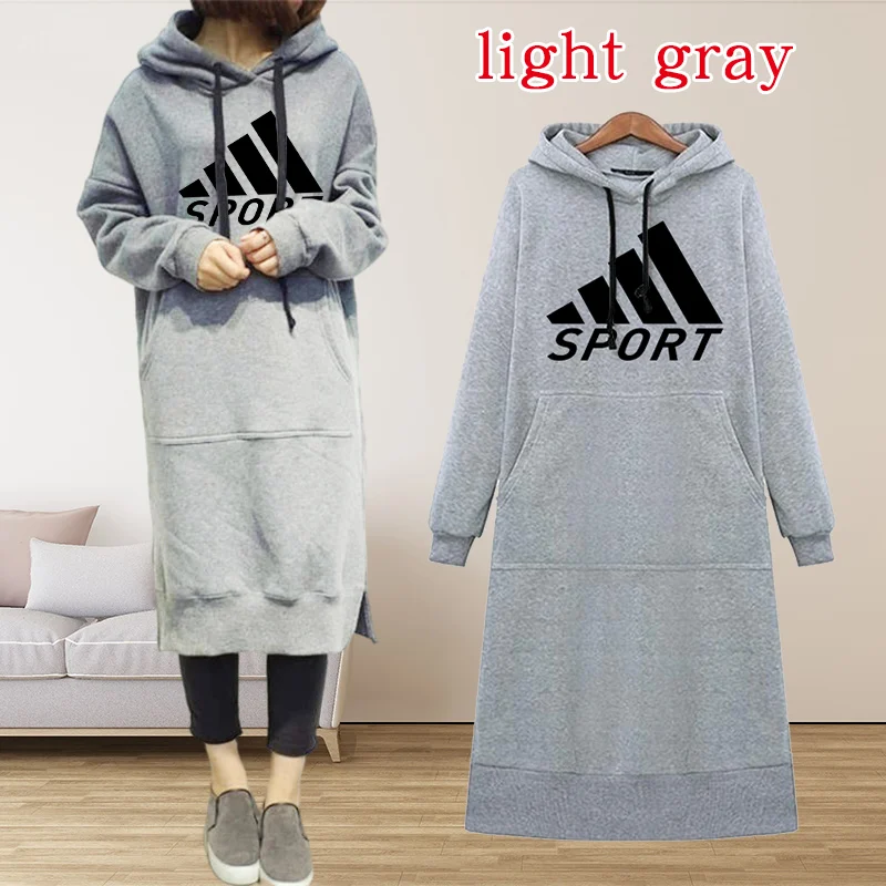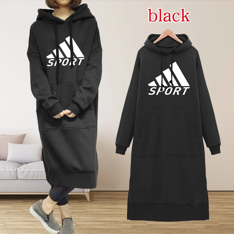 Женские длинные толстовки RCCRINE, Свободные повседневные толстовки с капюшоном, осенне-зимний мешковатый пуловер с длинным рукавом и принтом, платье-Толстовка большого размера