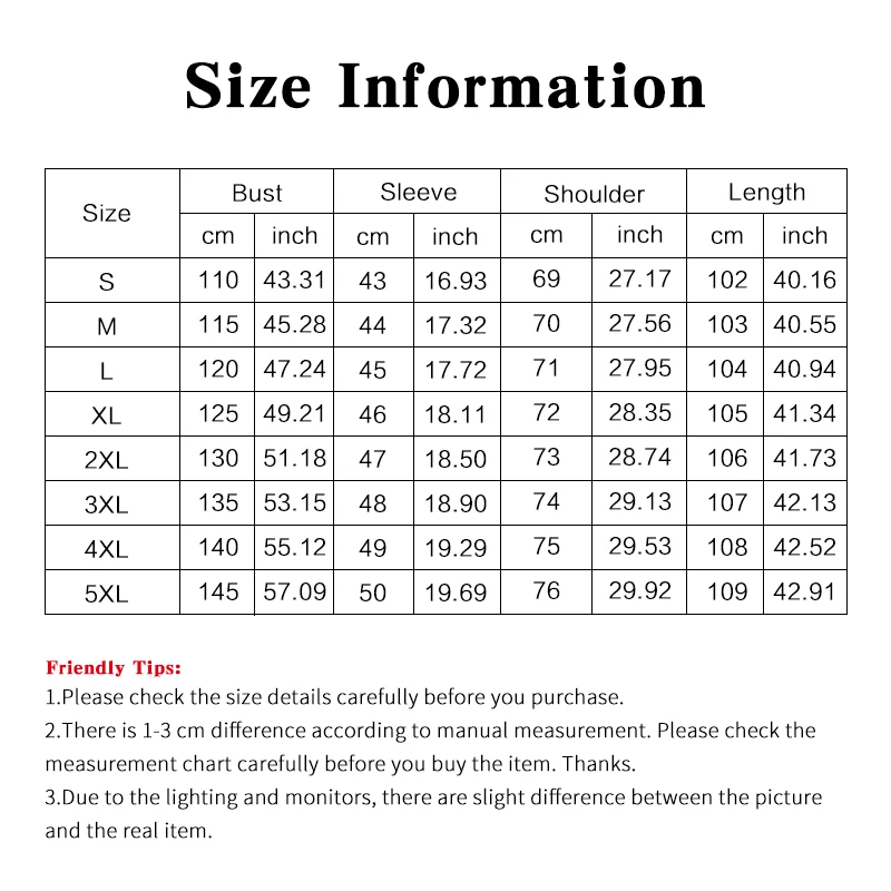 SizeS,M,L,XL,2XL,3XL,4XL,5XL