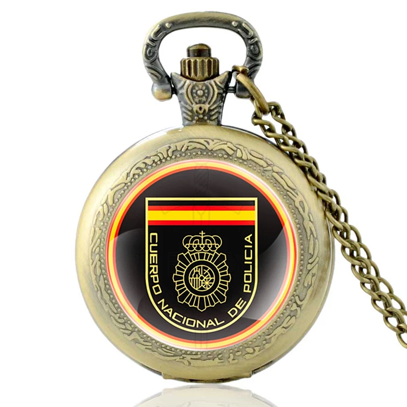 Серебряные модные наручные часы со стеклянным кабошоном в стиле Испании, полиции, винтажные мужские и женские наручные часы с кулоном и ожерельем, подарки