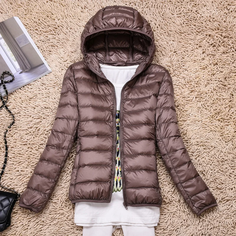 Женский ультралегкий пуховик с капюшоном, осенне-зимняя тонкая курт...