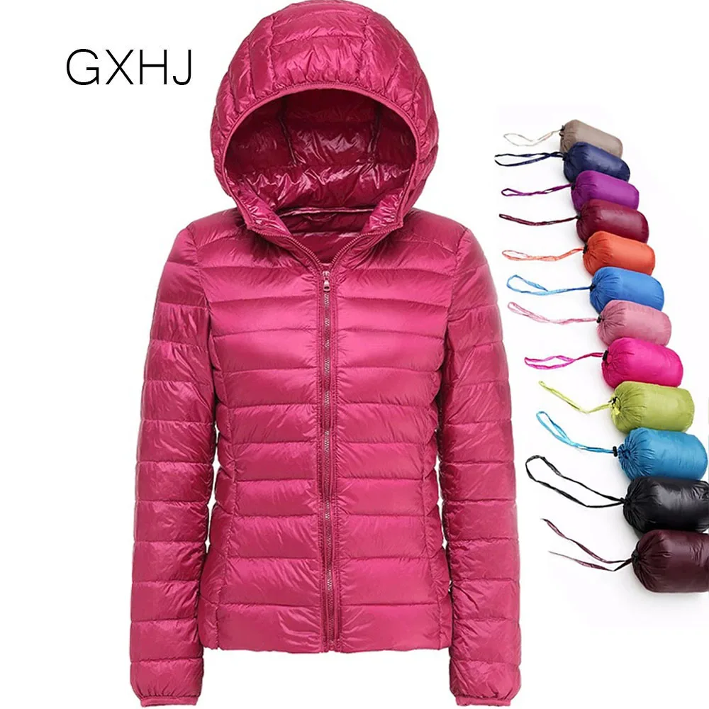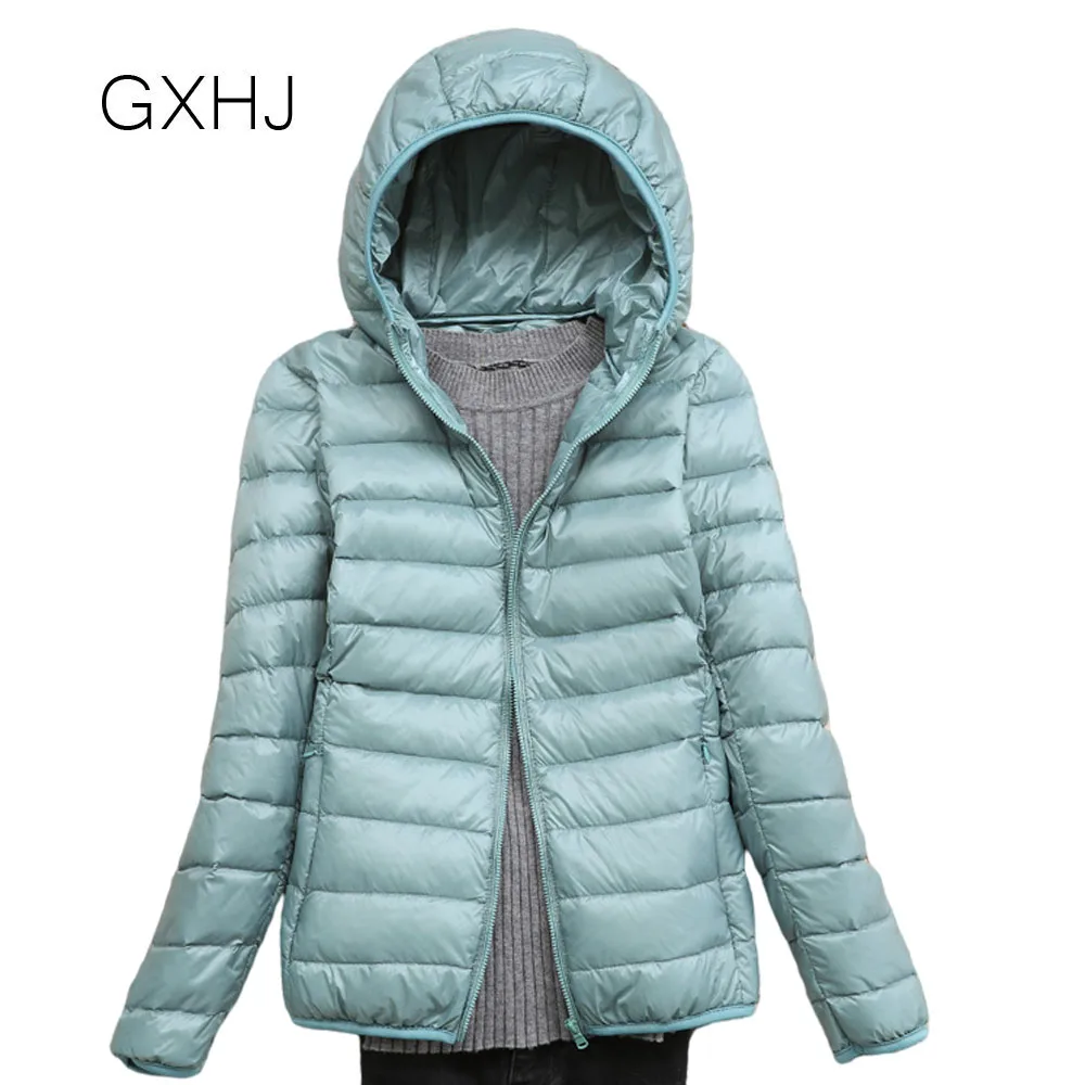 GXHJ 5XL 90% пуховик Женское пальто осень зима 2022 куртки теплые женские сверхлегкие с капюшоном ветрозащитное пальто пуховая куртка