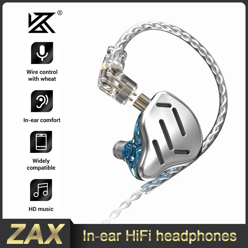 Наушники KZ СабоZAXZS10pro со съемным кабелем, 7BA + 1DD, динамические гибридные проводные наушники, Hi-Fi басовая Спортивная гарнитура серебристого цвета с микрофоном
