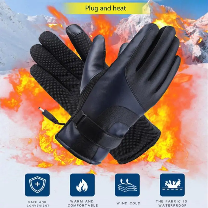 Зимние перчатки с электроподогревом, перчатки с зарядкой от USB для сенсорных экранов, теплые водонепроницаемые перчатки для езды на мотоцикле и лыжах, подарок на Рождество