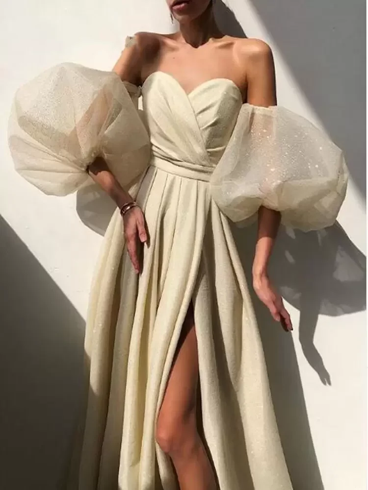 Женское вечернее платье с открытыми плечами, ТРАПЕЦИЕВИДНОЕ ПЛАТЬЕ до пола с высоким разрезом, 2022