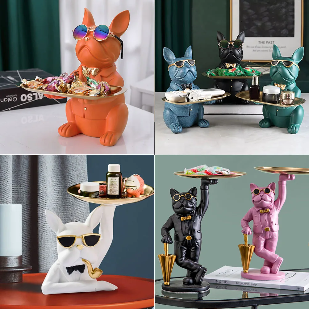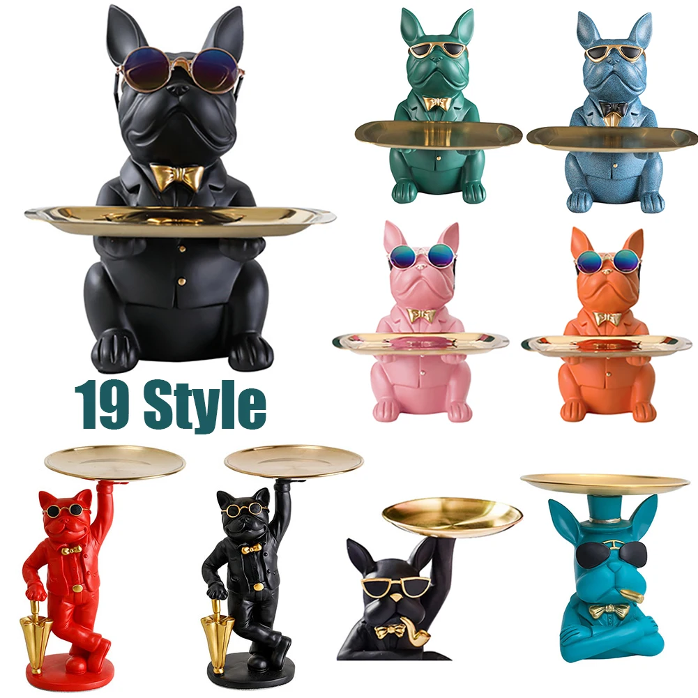 Скандинавская скульптура французского бульдога, статуя собаки, украшение стола для хранения ювелирных изделий, Подарочная тарелка с ремнем, поднос для очков, статуя для домашнего искусства