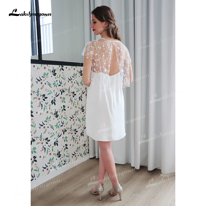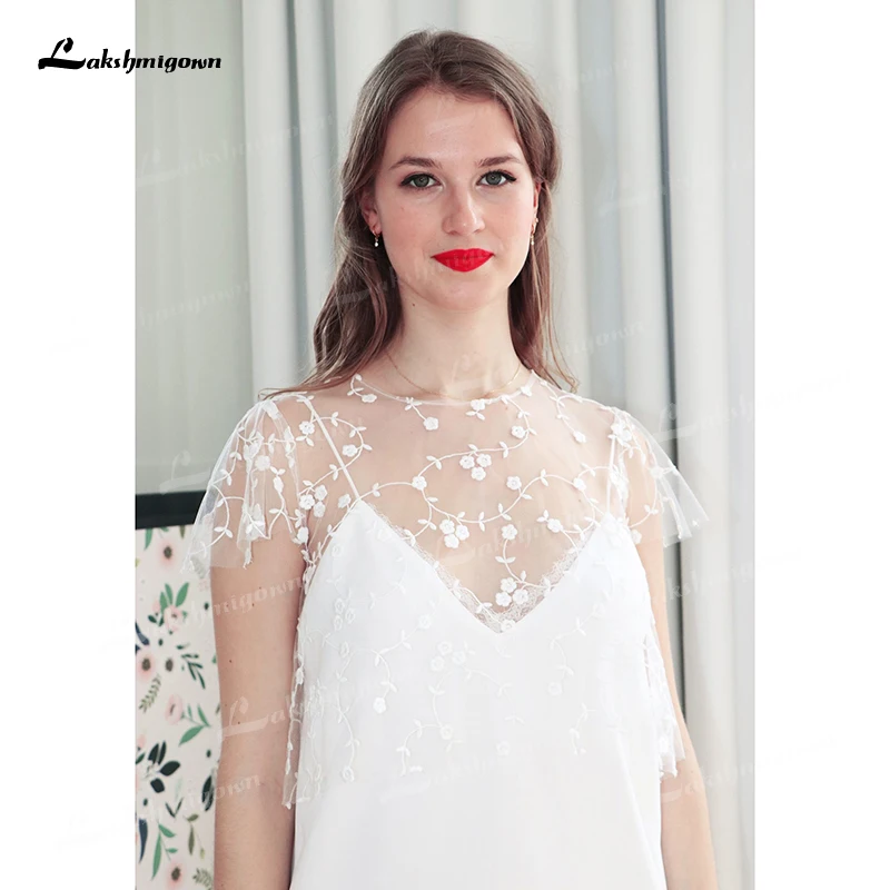 Милое Свадебное Платье-футляр из двух частей с V-образным вырезом и кружевом, платья невесты из шифона с коротким рукавом-крылышком, открытой спиной и пуговицами, 2022