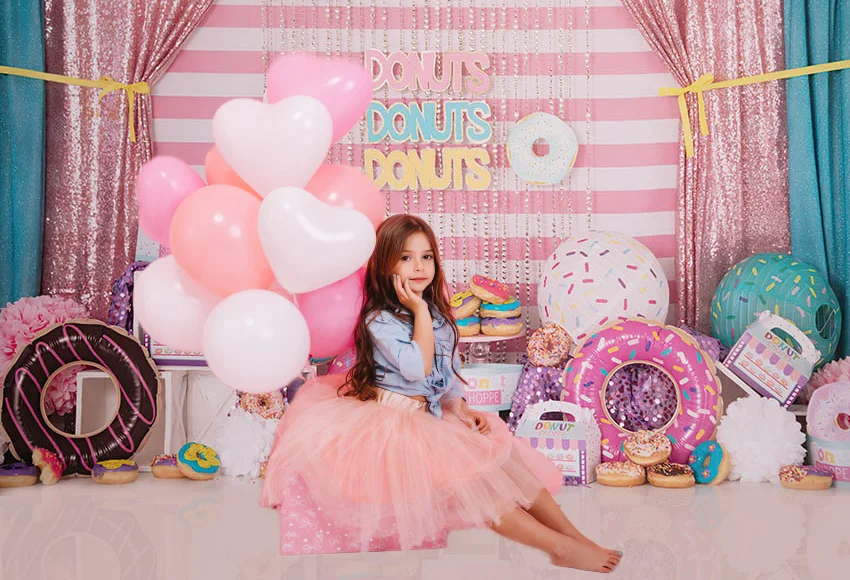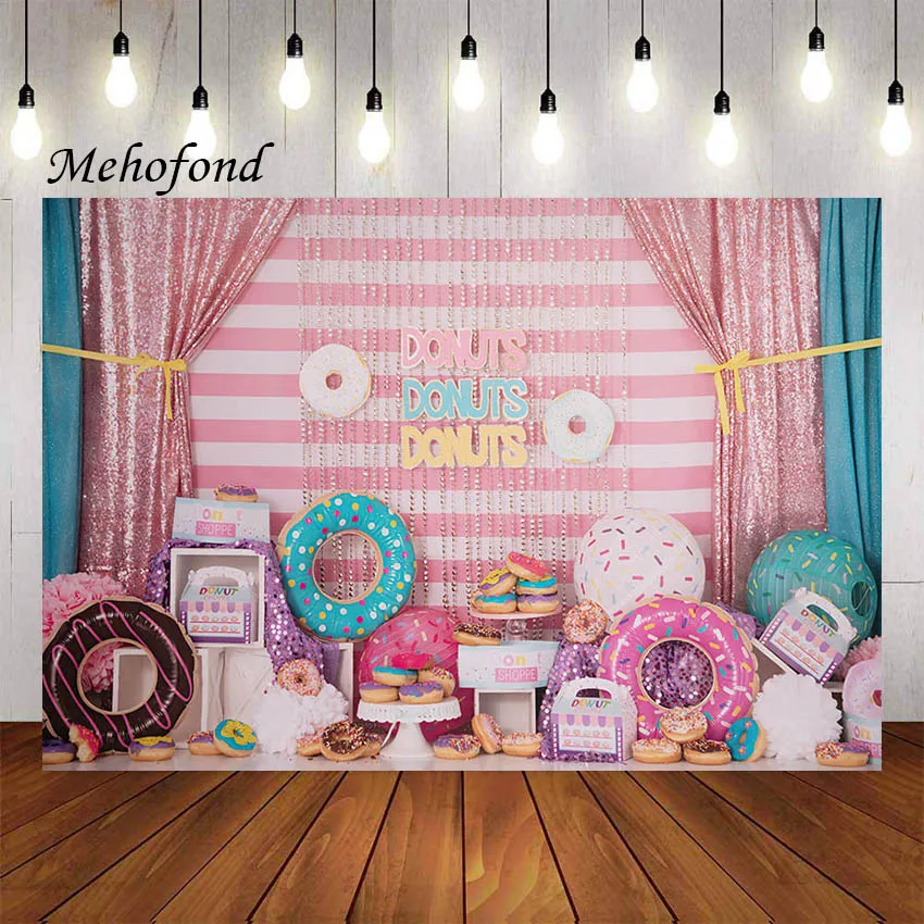 Фон для фотосъемки Mehofond Розовая Занавеска пончик Конфеты Пончик магазин детская девочка 1-й день рождения торт разбивать фон фотостудия