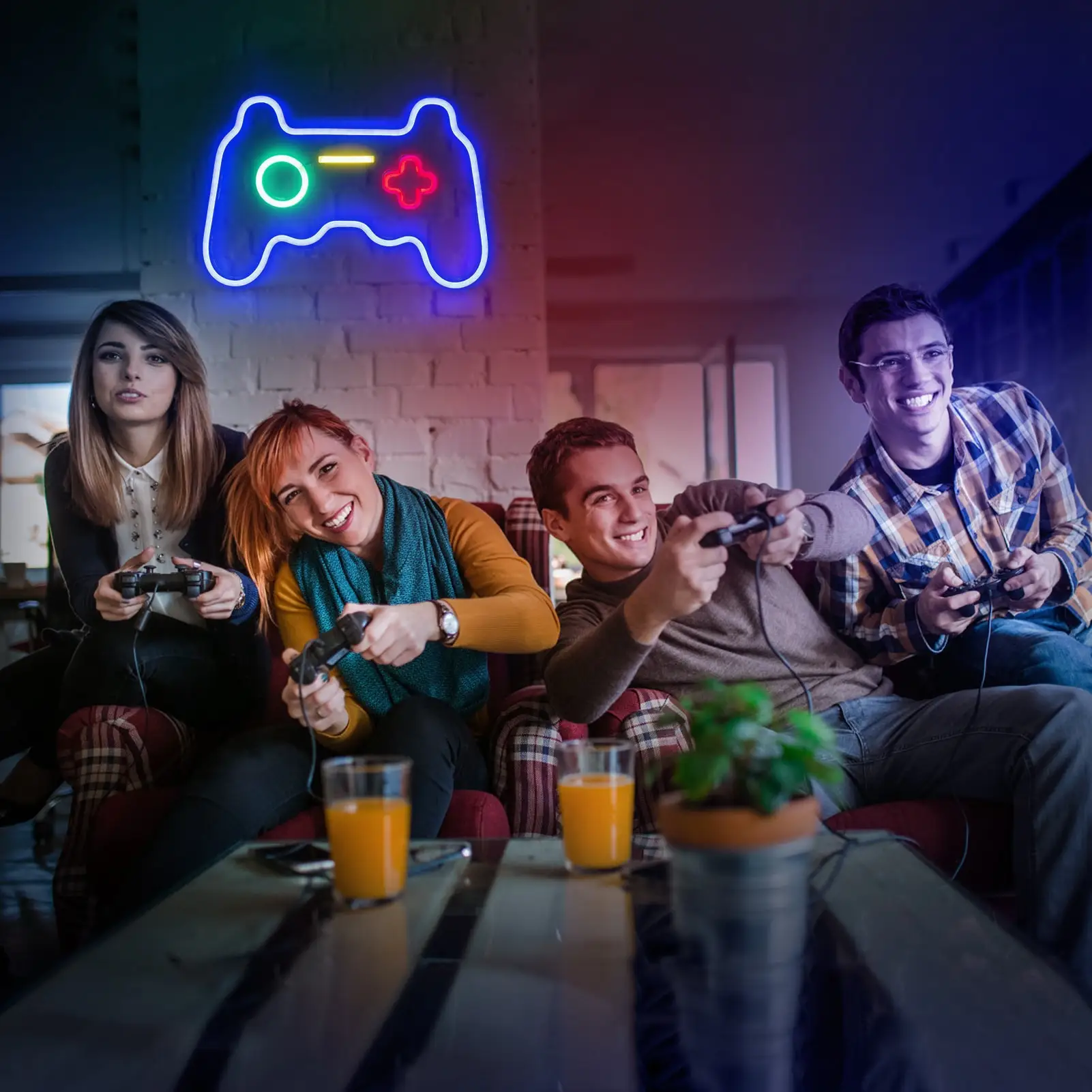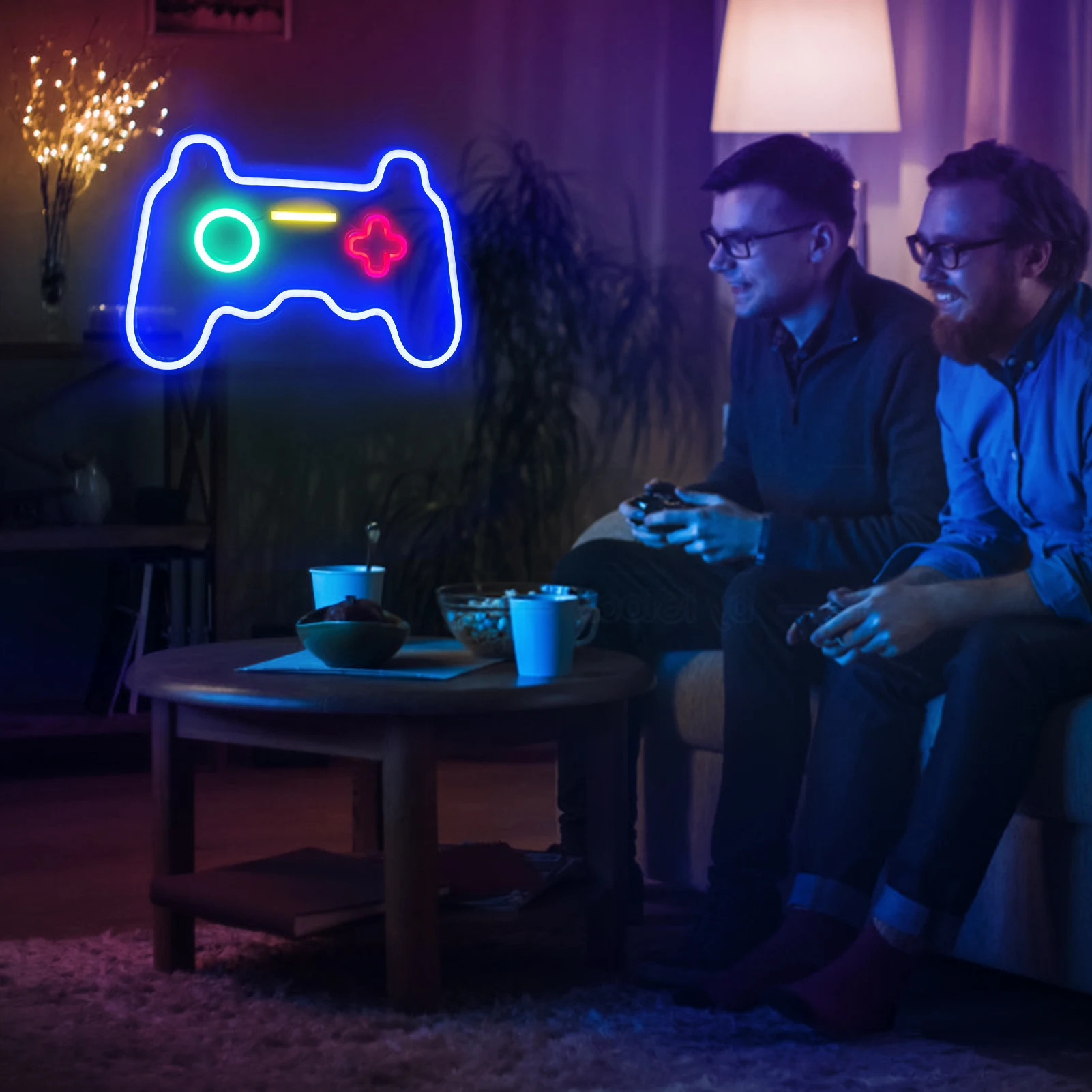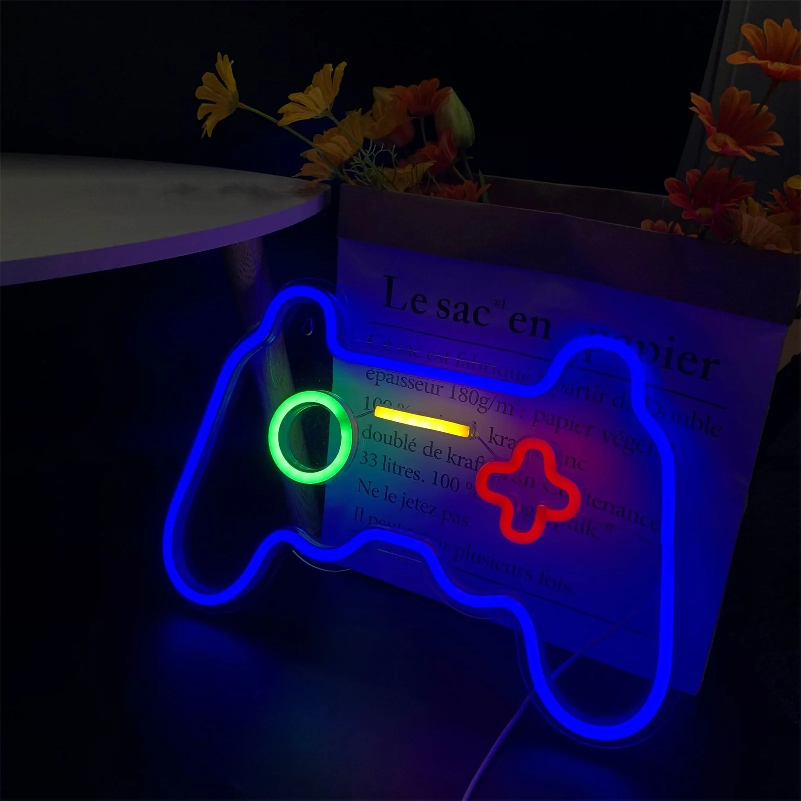 Неоновая вывеска для игр светильник светодиодный ночник для геймпада, подвесная игровая вывеска с неоновым эффектом и питанием от USB, аксессуары для дома, бара, мужской пещеры