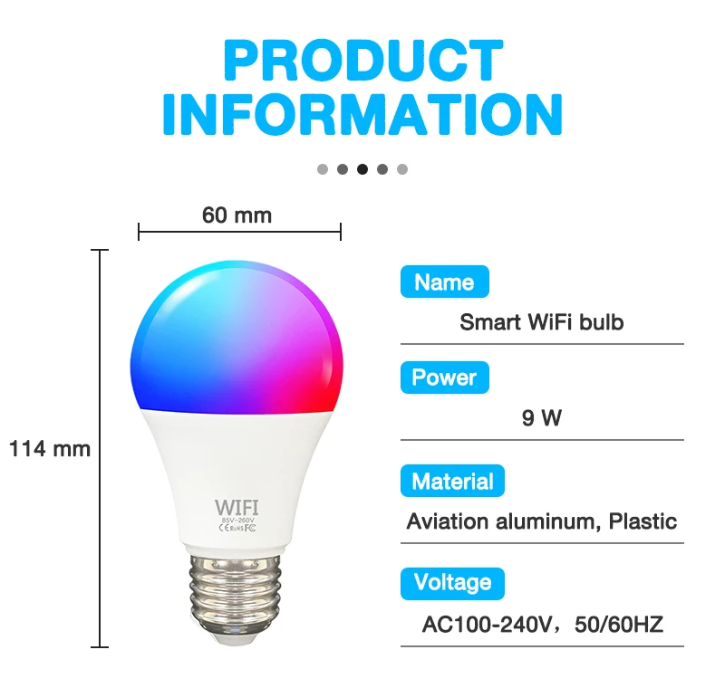 Умная лампа E27 B22 9WRGBCW с Wi-Fi и голосовым управлением