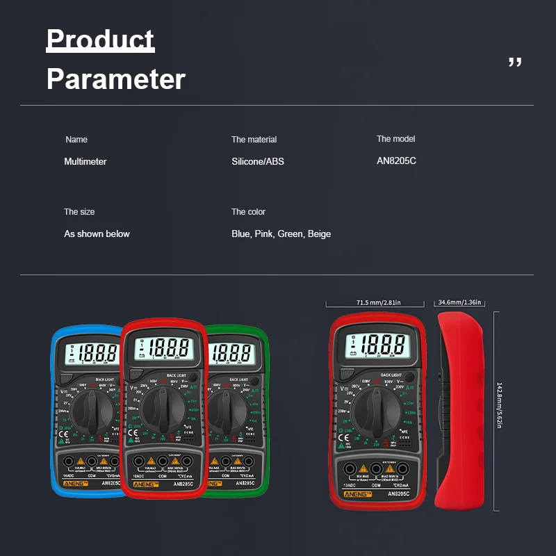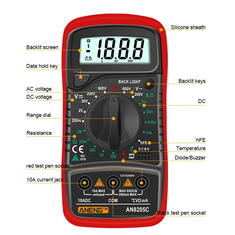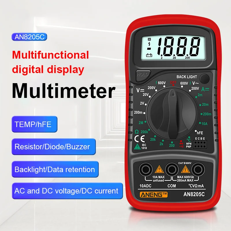 Портативный цифровой мультиметр AN8205C, измеритель переменногопостоянного тока с ЖК-дисплеем и подсветкой, амперметр для измерения напряжения и сопротивления