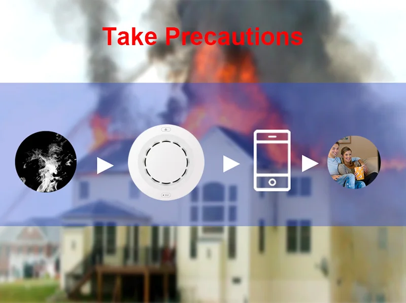 Тревожит Вас и Вашу семью вовремя. Его можно широко использовать в домашнем хозяйстве, гостиной, кофейне, танцевальном зале и в любых других местах, где требуется мониторинг пожарной сигнализации. (Такой датчик не может обнаруживать газ/тепло/огонь.)