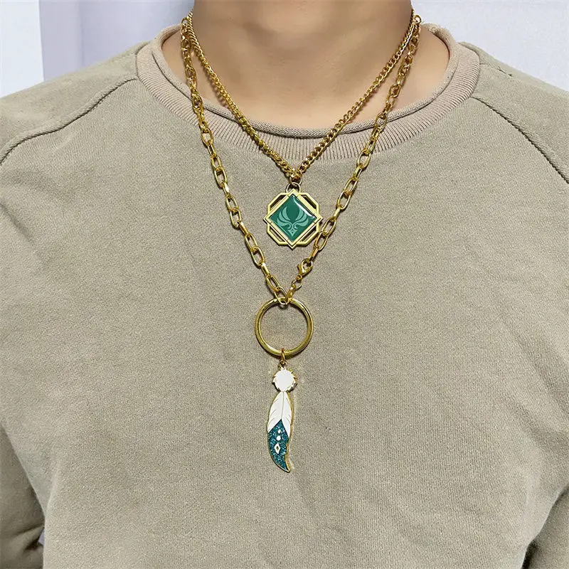 Игра Genshin ударное двойное ожерелье элемент ветра Божьи глаза пер...