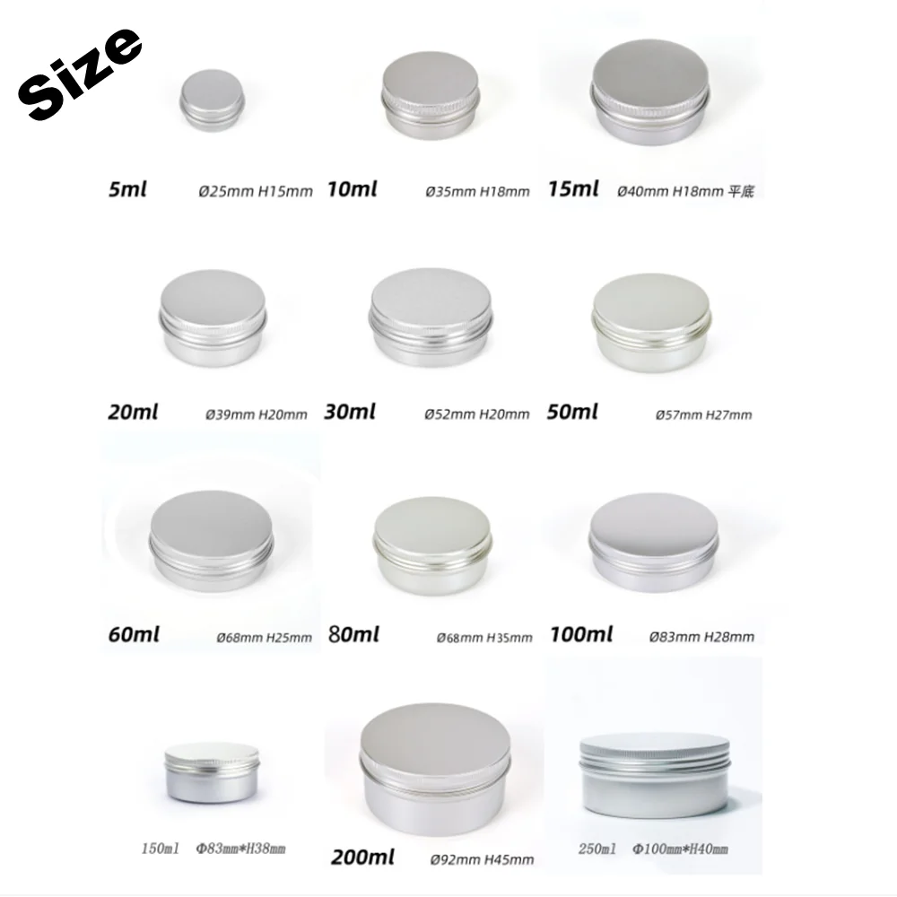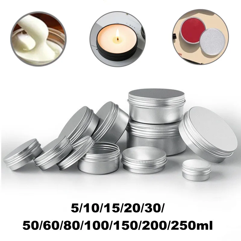 Косметические алюминиевые банки 5-250 мл, алюминиевые коробки для крема для лица, серебряные банки, стандартные круглые банки для свечей и специй, контейнер с крышкой