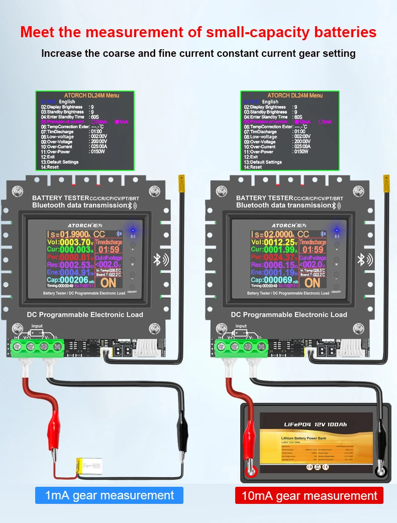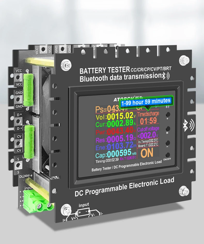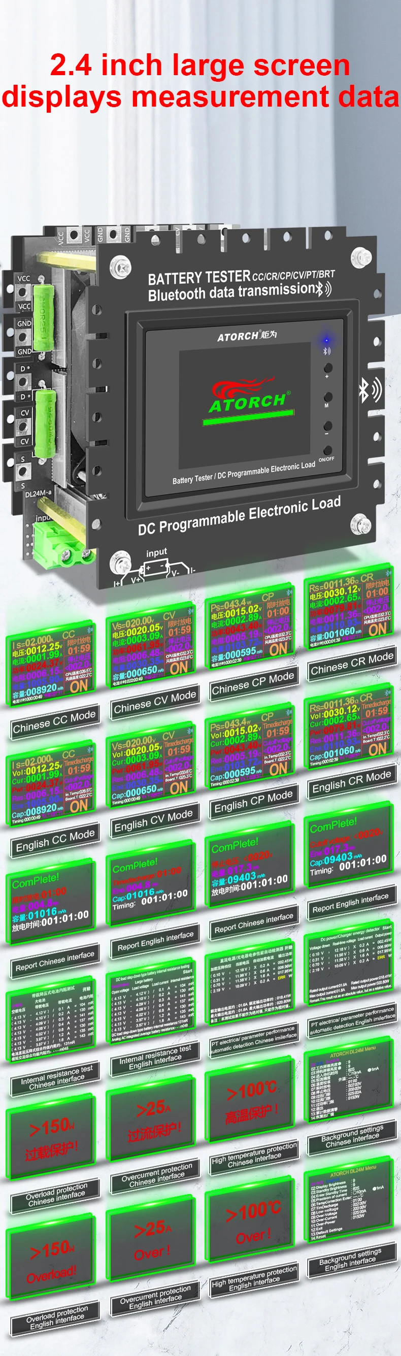 Электрические параметрыИспытательное напряжение: 2 ~ 200 вРабочий ток: 3 мА ~ 25 АDL24MP разрядная мощность: напряжение * ток <150 Вт(Фактический рабочий ток ограничен максимальной мощностью, пожалуйста, Отрегулируйте ток в соответствии с правилами энергосбережения)Встроенные функции защиты от перегрузки по току, перегрева, перегрузки по мощности, если интерфейс защиты выскакивает, пожалуйста, обратите внимание на регулировку параметров, должен регулироваться до максимальной Мощность, а затем разрядка, вы можете сначала медленно и плавно настроить заданное значение в пуске и разрядке, для того, чтобы настроить до максимальной мощности для Разрядки