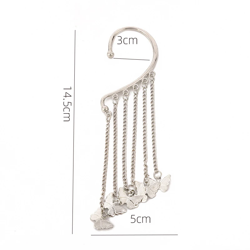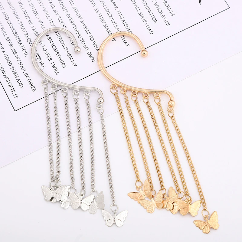 Женские ажурные серьги-клипсы с кисточками и бабочками