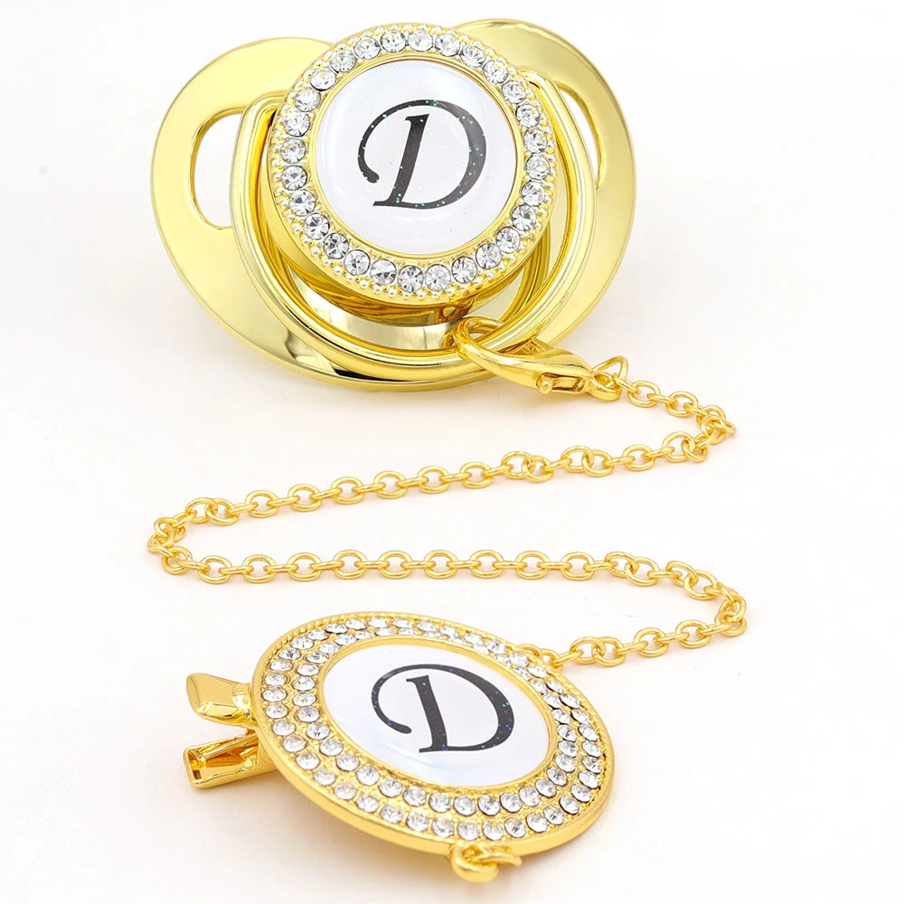 Золотая Соска-пустышка с зажимами, роскошная Соска-пустышка с алфав...