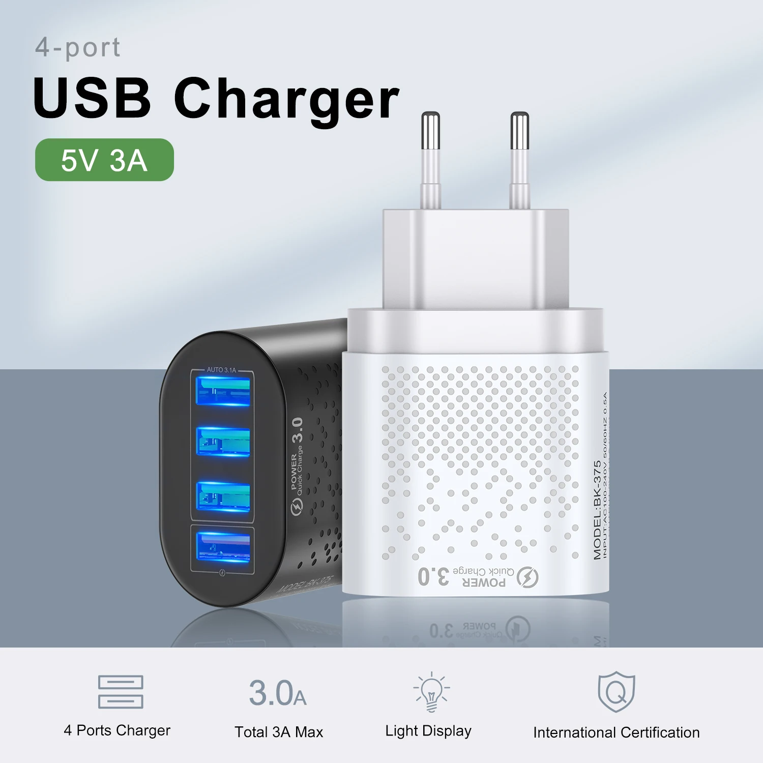 EUUSUK штепсельная вилка 48 Вт адаптер для быстрой зарядки телефона зарядное устройство для iPhone Xiaomi QC3.0 Быстрая зарядка 4 USB порта концентратор мобильный телефон зарядное устройство