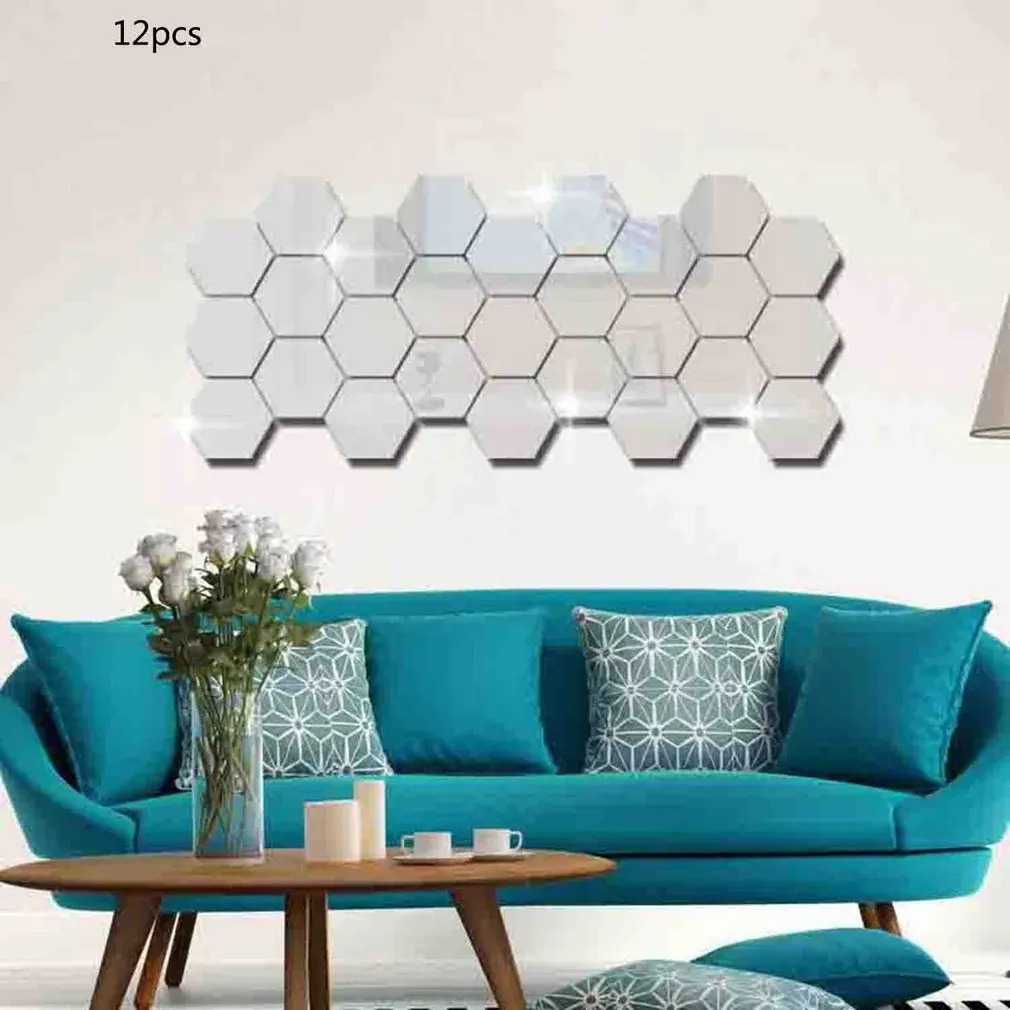 12 шт шестигранные съемные водонепроницаемые самоклеющиеся зеркальные наклейки для дома, ванной комнаты, кухни, настенные наклейки, кухонные украшения