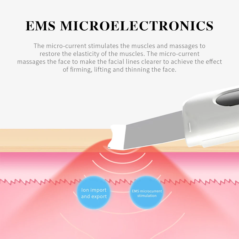Ультразвуковой скребок для кожи, удаляющий лопатка для лица, электрическая лопатка для глубокой очистки пор, от акне, черных точек, Электронная лопатка