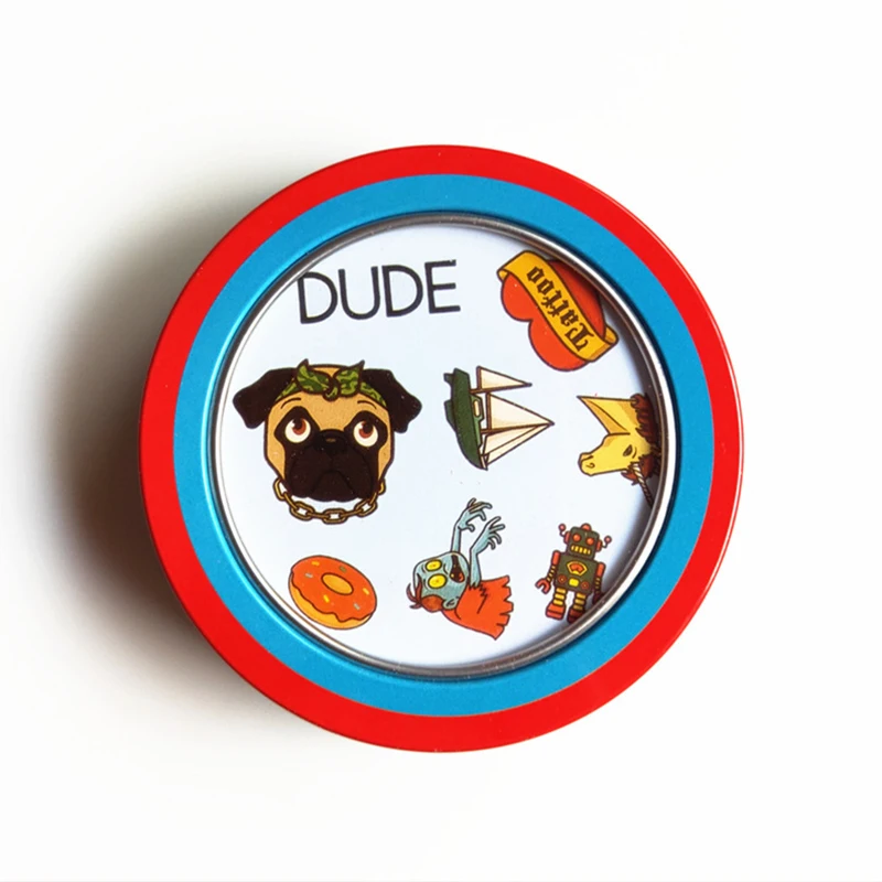 Одна штука в упаковке вес нетто: 180 г железная коробка для хранения Размер: 9,7*4,5 смНашли его! Это игра для сравнения зрения людей. Похоже на игру «Найти разницу»! Как только игра начнется, быстро найдите один и тот же символ на двух картах.Каждая карта имеет 8 символов. Есть в общей сложности 50 различных символов, разбросанных на 55 игральных карт (31 карты в версии океана). Удивительно, но между любыми двумя картами есть только один соответствующий символ. Эта маленькая коробка для игр содержит пять способов игры.