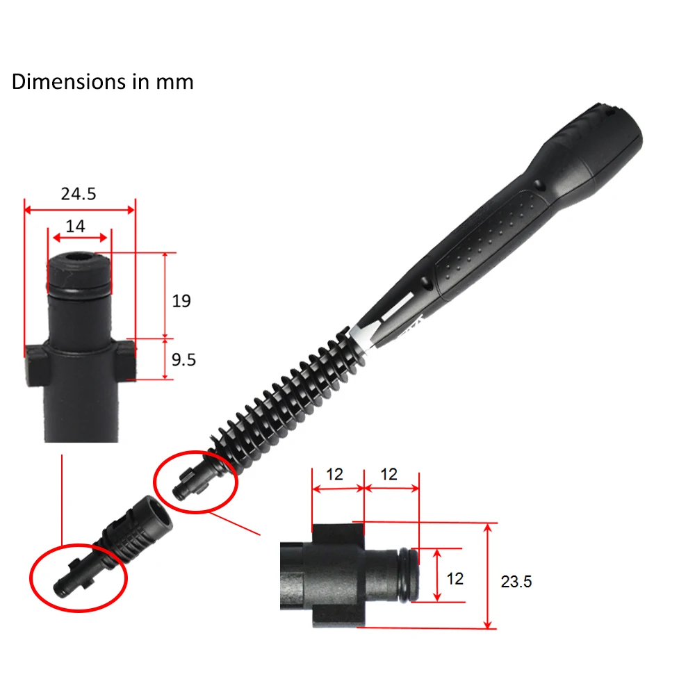 Так как существует два типа пистолетаДля этого бренда мойки высокого давления. Пожалуйста, проверьте размер подключения и убедитесь, что он подходит для вашей машины. Мы не несем никакой ответственности за несовместимость пистолета и копья. Если вы не уверены, пожалуйста, свяжитесь с нами и отправьте нам фотографию вашего оригинального пистолета и копья, мы поможем выбрать подходящий продукт.