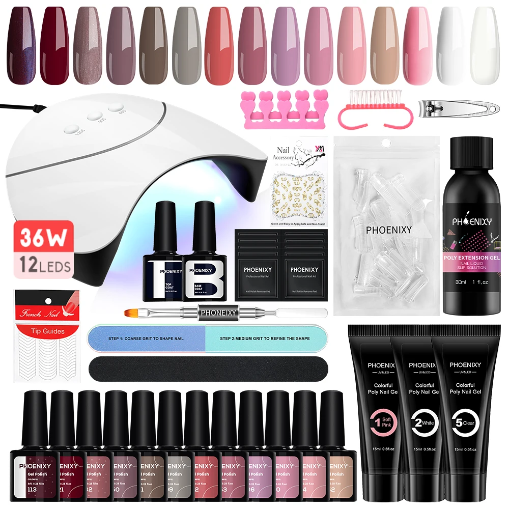 Полный приблизительный для маникюра полигель для ногтей полуперманентный набор с УФ-лампой 36 Вт полигель для наращивания ногтей