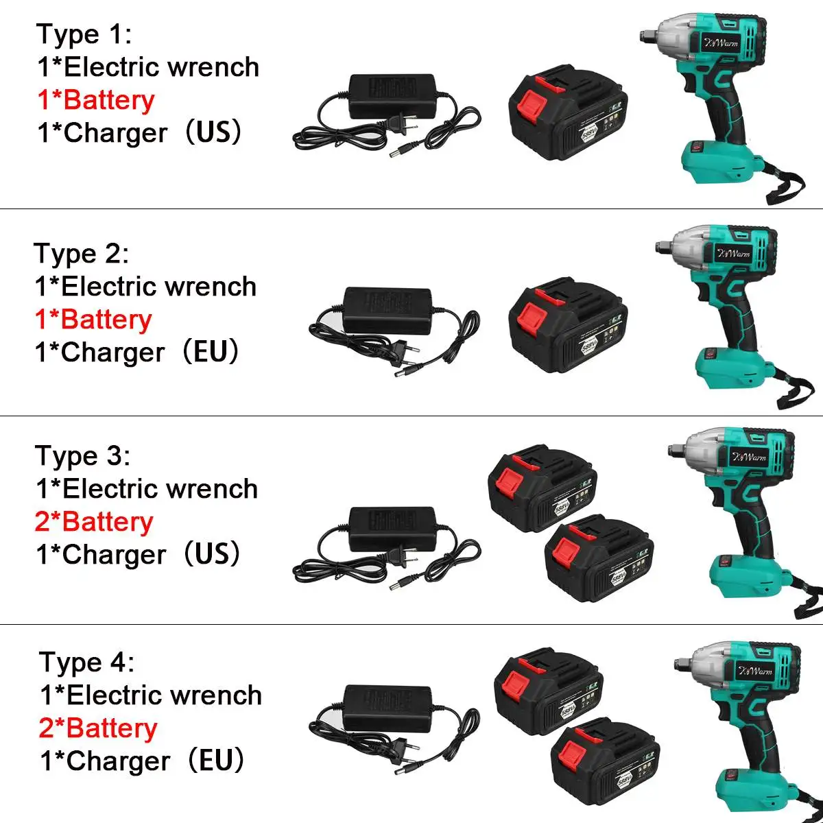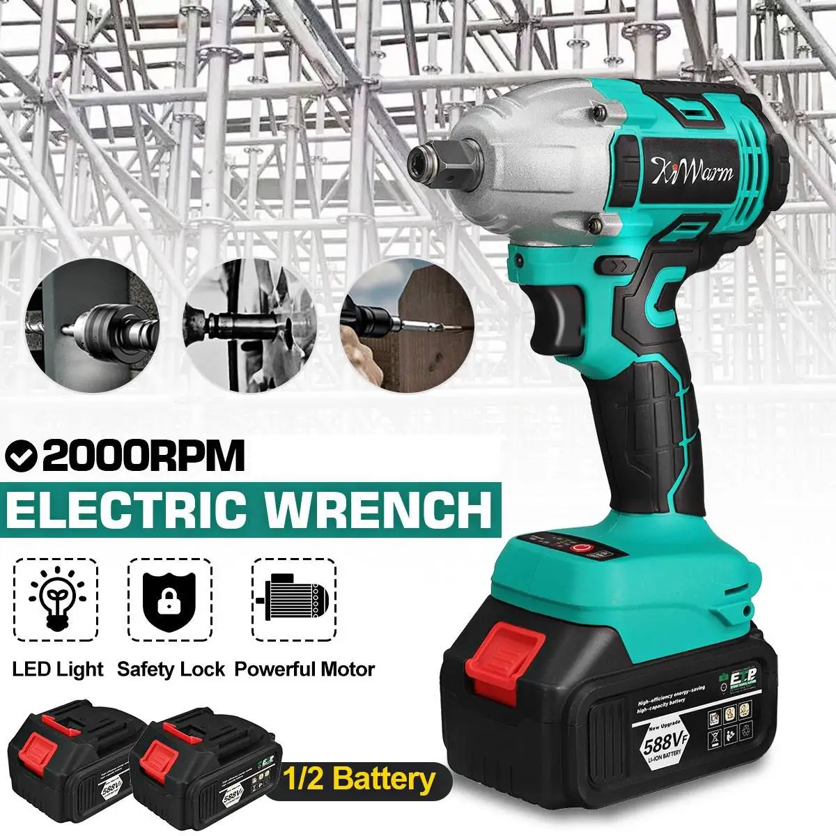 Бесщеточный беспроводной электрический ударный гайковерт, электроинструменты, перезаряжаемый, совместимый с 2 литий-ионными аккумуляторами большой емкости 588VF