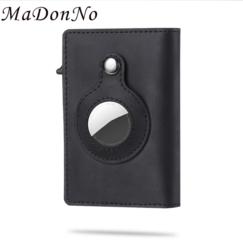Чехол-бумажник из натуральной кожи с рисунком Airtag держатель для карт, чехол для ленивых, с защитой от потери, RFID-держатель для карт, чехол для мужчин