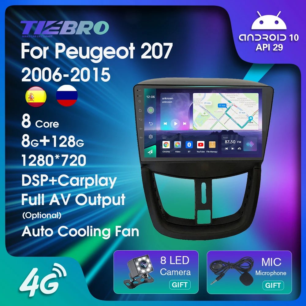 Автомагнитола TIEBRO 2DIN Android 10 для Peugeot 207 2006-2015 8G + 128G Автомобильный мультимедийный плеер GPS-навигация Авторадио стерео приемник