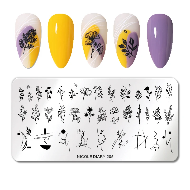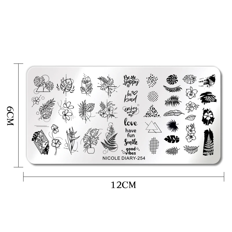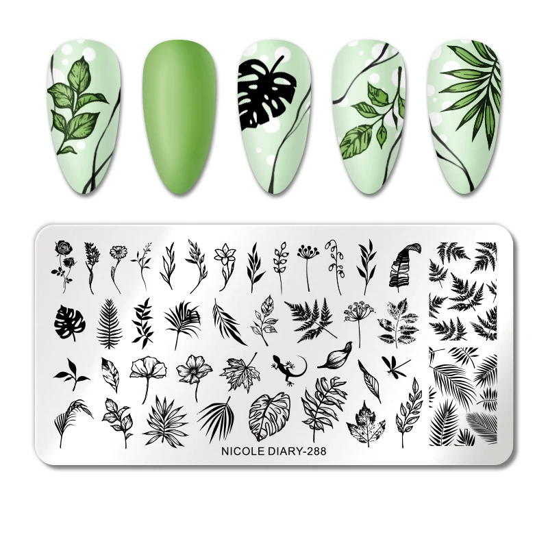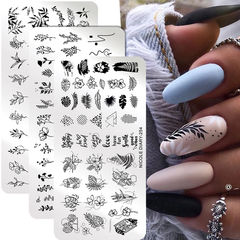 Трафареты NICOLE DIARY для дизайна ногтей, пластины для стемпинга с листьями, цветами, геометрическими линиями, сердцем, любовью, Дня Святого Валентина, инструменты для нейл-арта