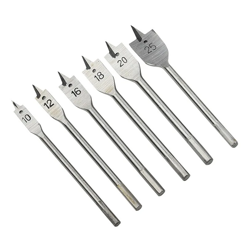 6 шт.набор, плоские сверла с шестигранным хвостовиком, 101216182025 мм