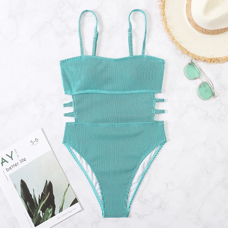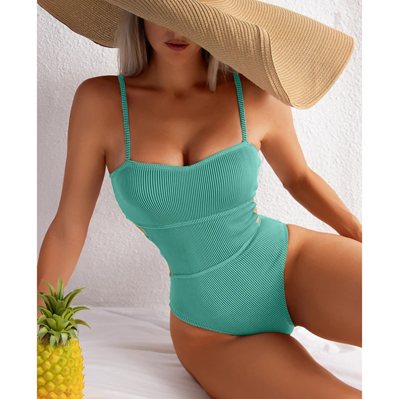 Купальник в рубчик Miyouj, зеленые цельные костюмы, сексуальный бод...