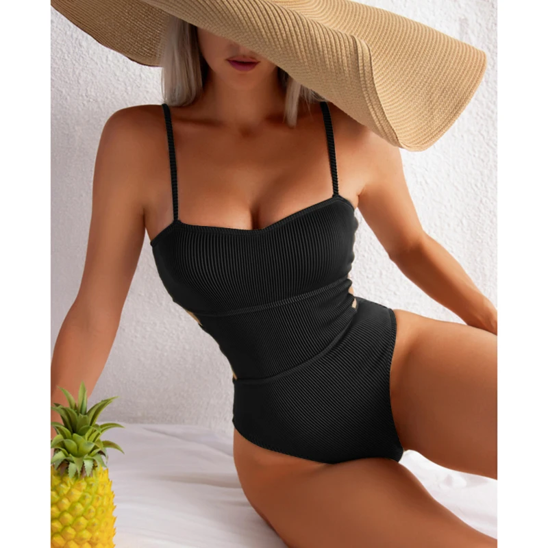 Соблазнительный купальник COOBBU в рубчик, цельный Однотонный женск...