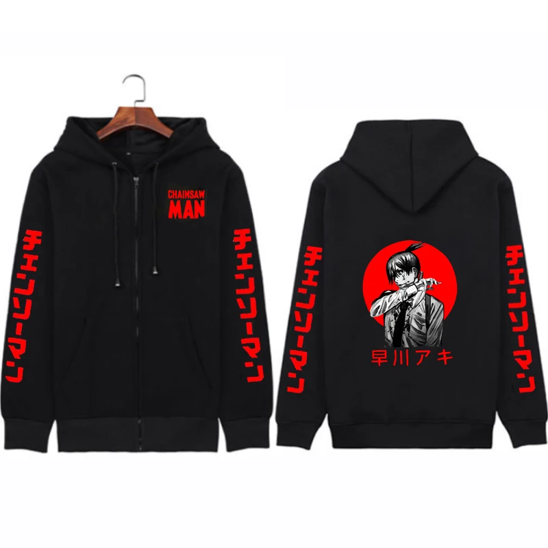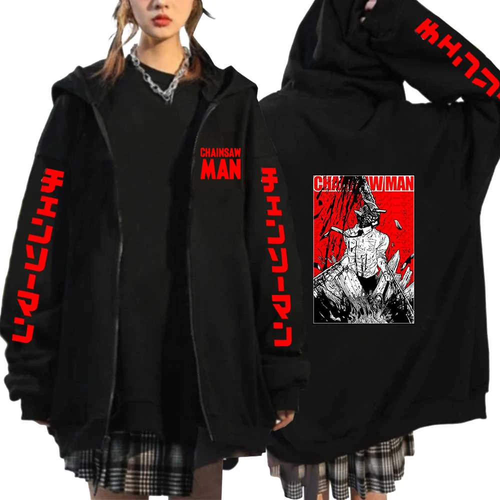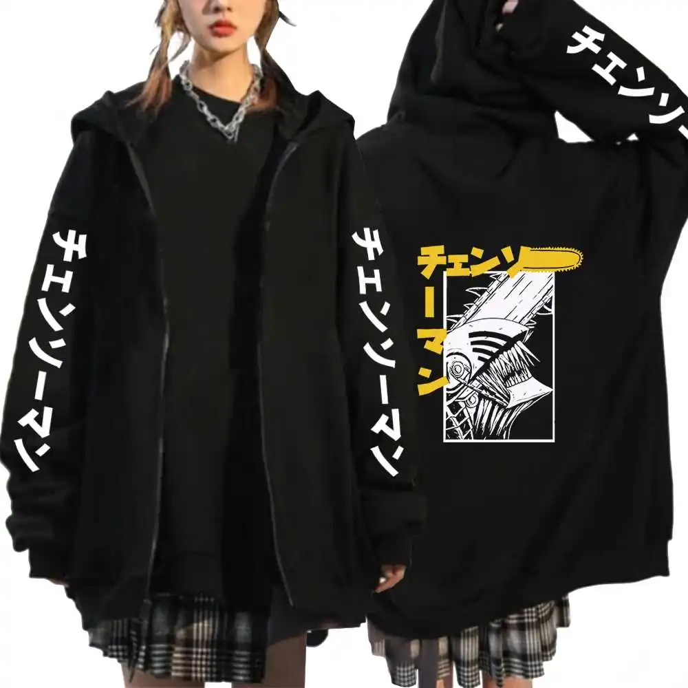Толстовки унисекс с капюшоном и принтом бензопилы, куртки на молнии в стиле хип-хоп, уличная одежда для косплея манги, флисовые куртки на молнии для женщин и мужчин