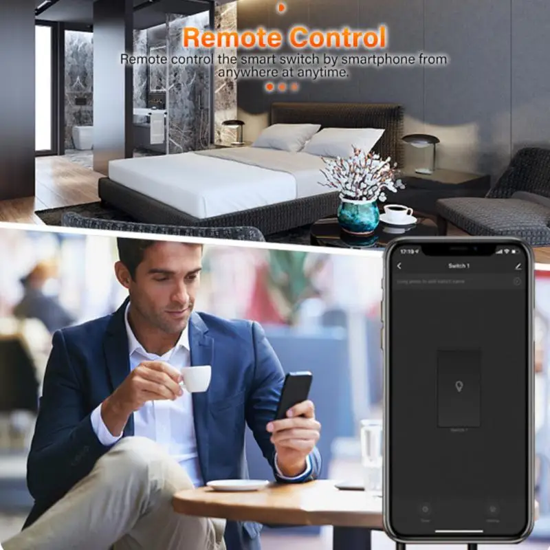 Управляйте включением и выключением устройства, синхронизацией, обратным отсчетом и другими функциями через мобильный телефон. Пока мобильный телефон имеет сеть, модуль переключателя дома можно контролировать по всему миру.