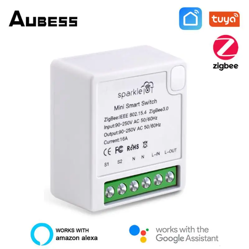 Умный мини-выключатель Zigbee, 16 А, поддержка 2-стороннего управления, Модуль Автоматизации умного дома, работает с Alexa Google Home Smart Life