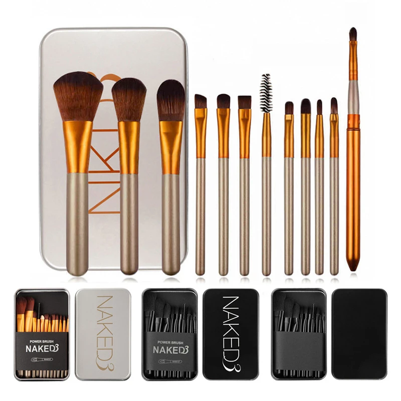 Набор из 12 кистей для макияжа в железной коробке, комбинированная кисть для пудры, румян, теней для век, Кисть для макияжа, инструменты для красоты