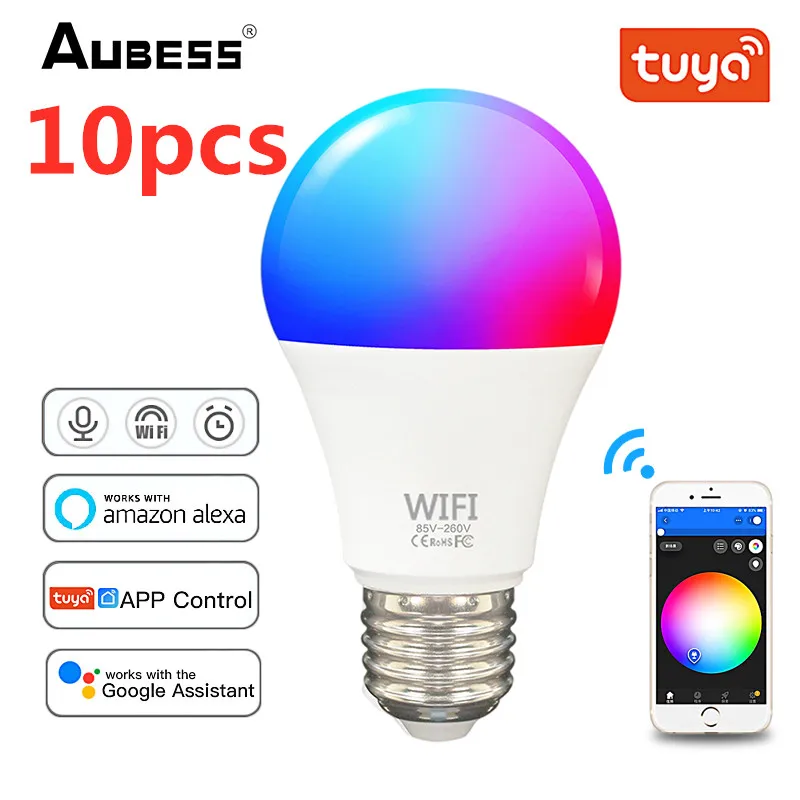 Умная Светодиодная лампа с широким напряжением, 15 Вт, E27, 10 шт.
