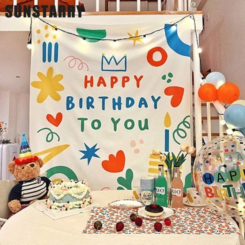 Фон для дня рождения, гобелен, ткань, кавайная детская комната, настенное украшение, для девочек, общежитие, мультфильмы, декор для вечерние