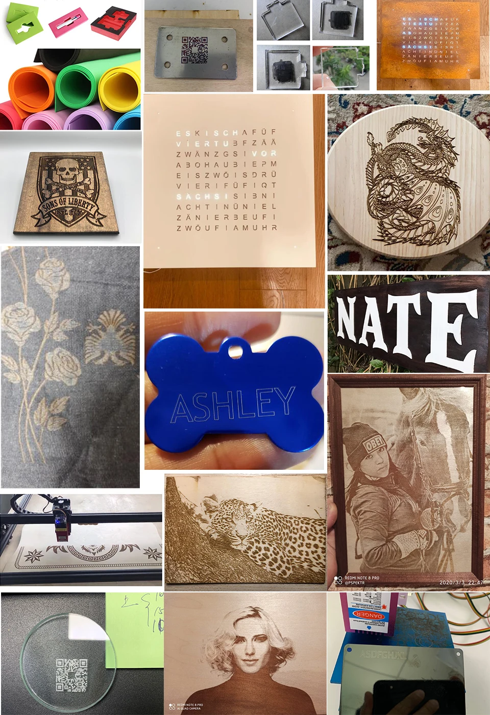 Этот мощный лазер лучше подходит для гравировки и резки тонких материалов, таких как фанера 1-2 мм или древесина балса, если вы хотите нарезать более плотное дерево или кожу, пожалуйста, выберите большую мощность.
