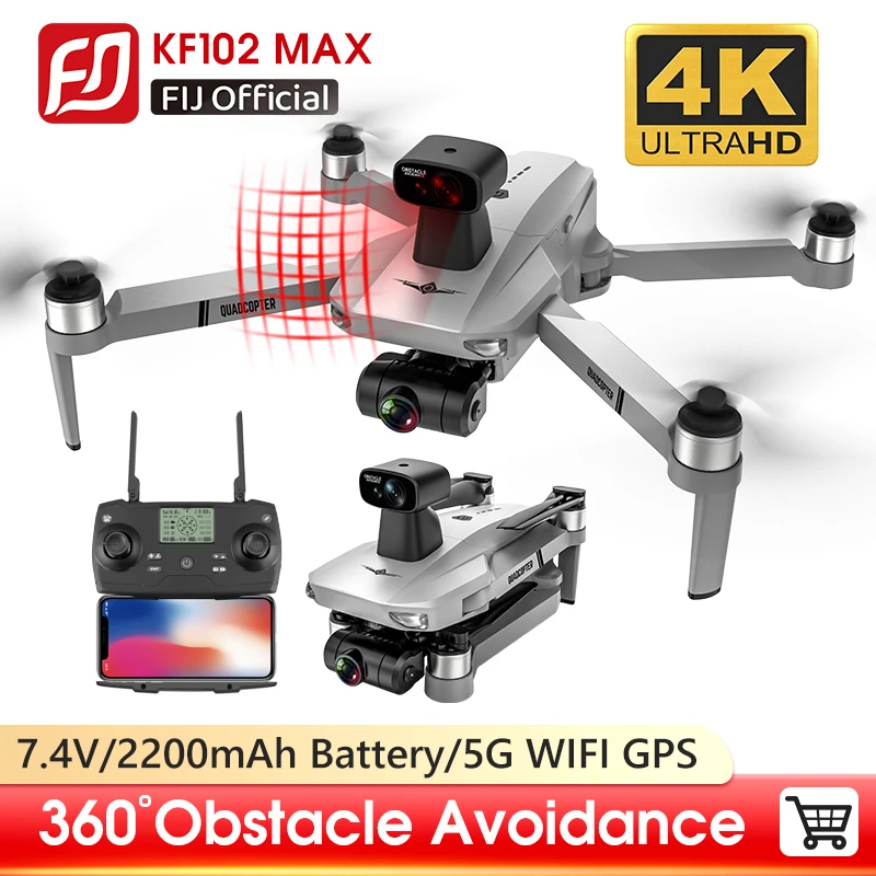 Квадрокоптер KF102 MAX, Квадрокоптер с 2-осевым шарнирным замком и камерой 4K HD FPV, бесщеточный двигатель для обхода препятствий 360