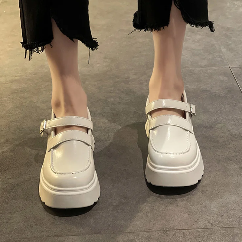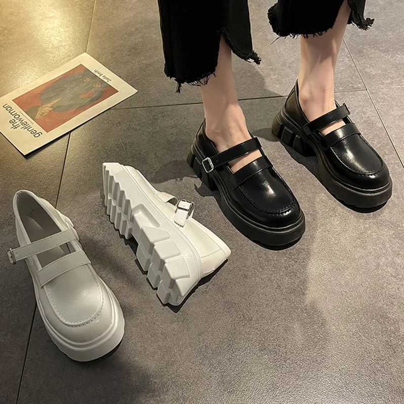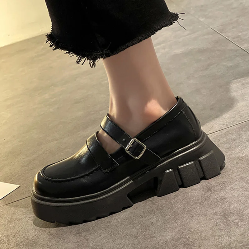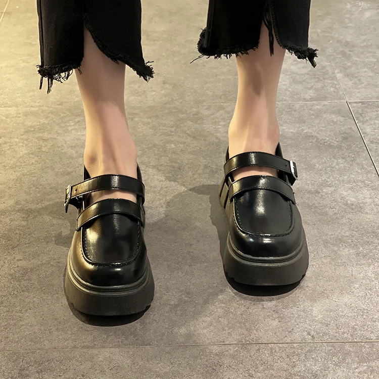 Женские туфли мэри джейн на платформе, черные повседневные кожаные туфли на толстой подошве, Лолита, с ремешком с пряжкой, весна-осень 2021
