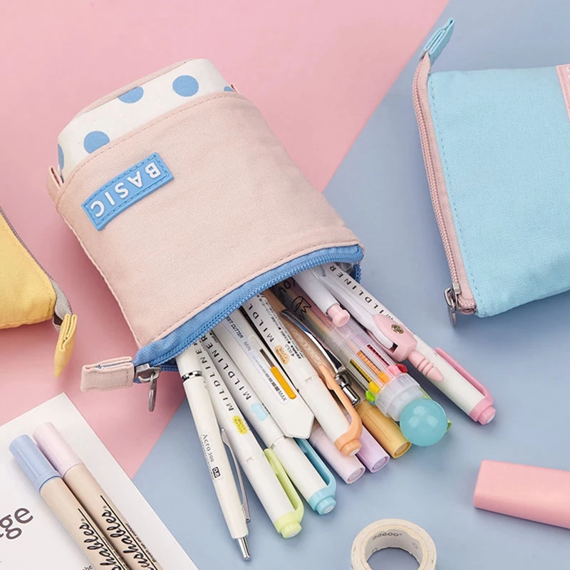 Выдвижной чехол для карандашей, школьные канцелярские принадлежности, сумка для хранения, милый чехол для ручек с волнистыми точками, милый держатель для ручек, подарки для детей, сумки для ручек