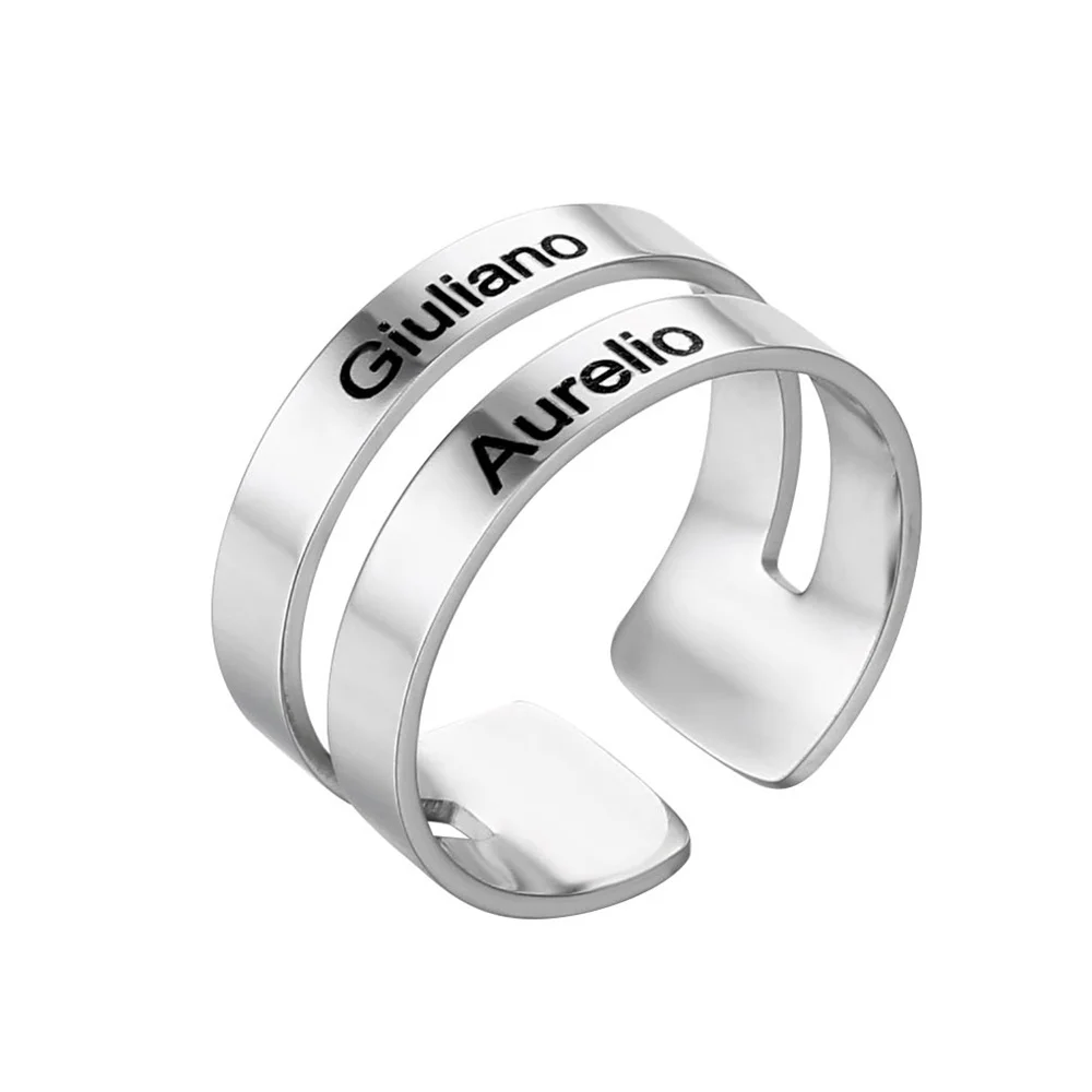 Регулируемое обручальное кольцо из нержавеющей стали с гравировкой имени для мужчин и женщин