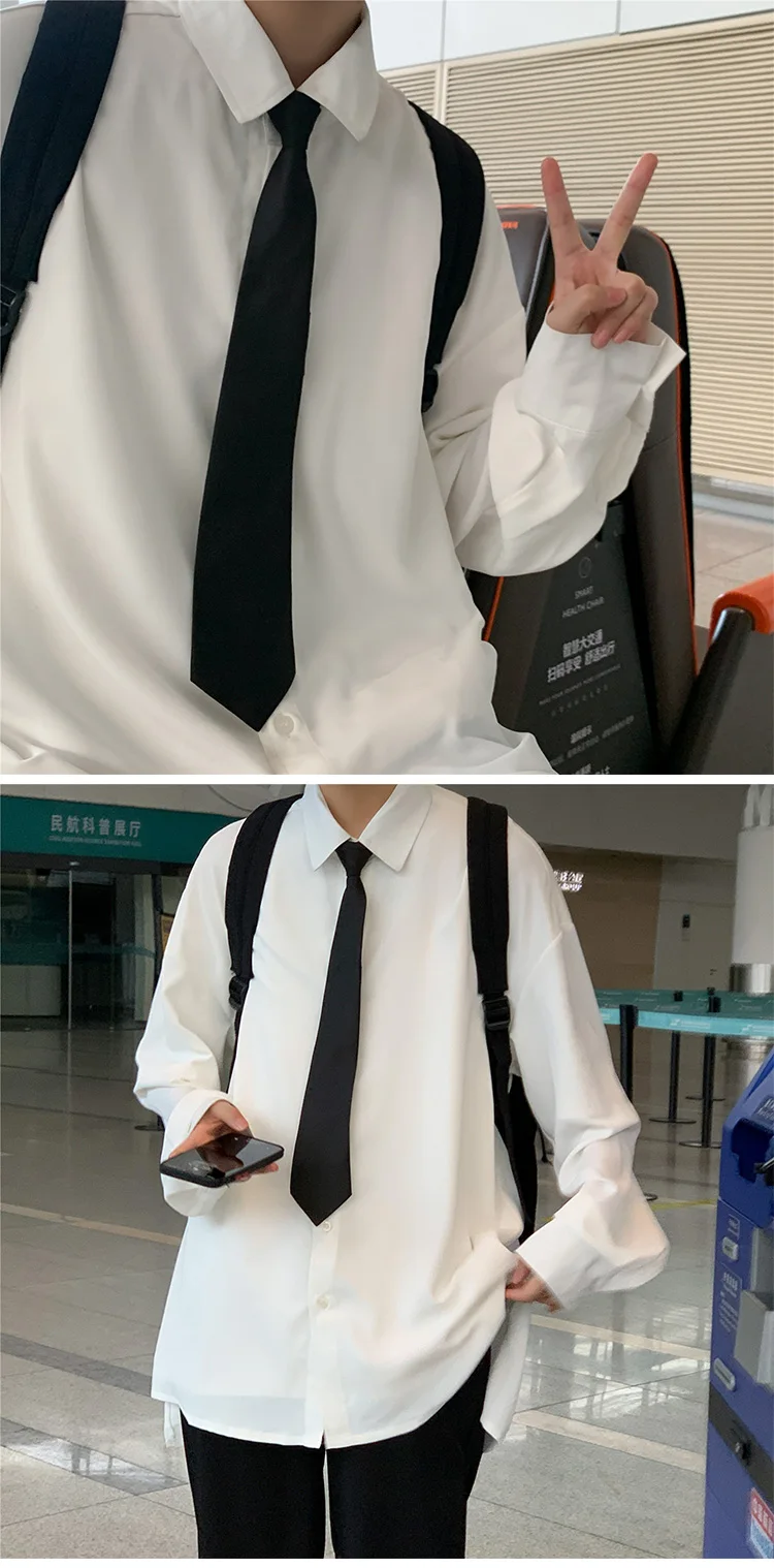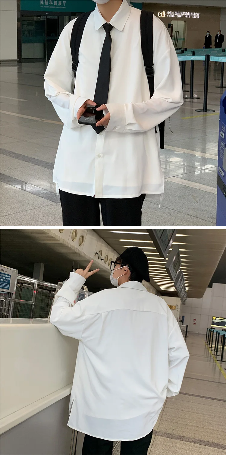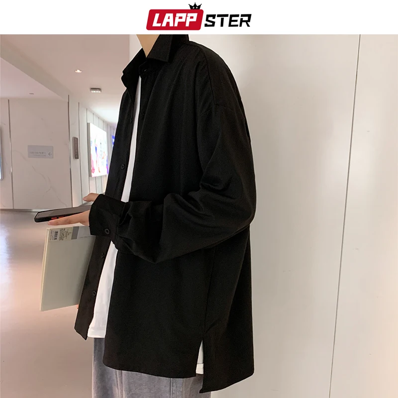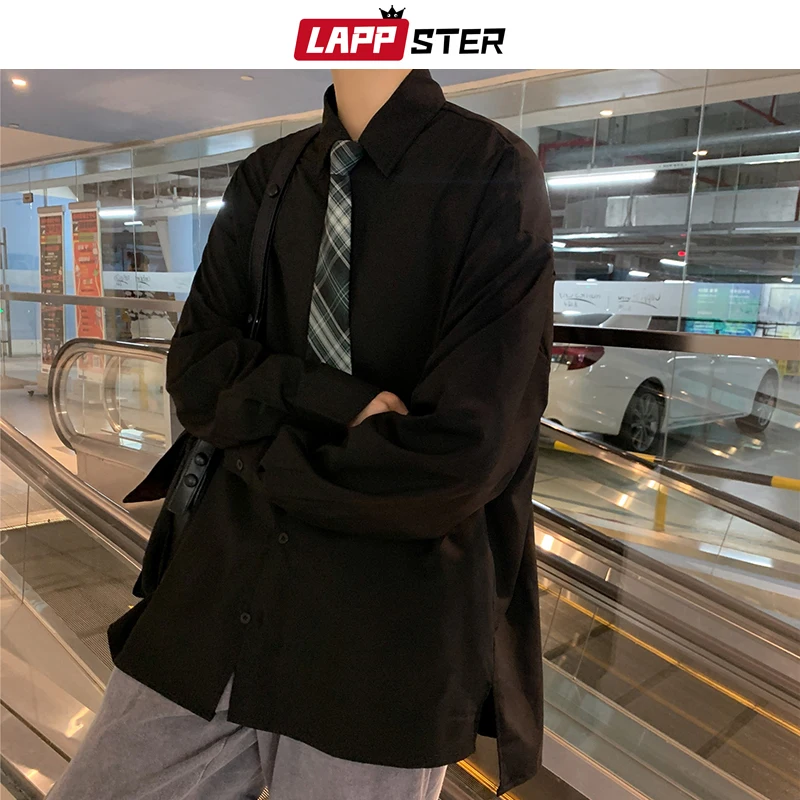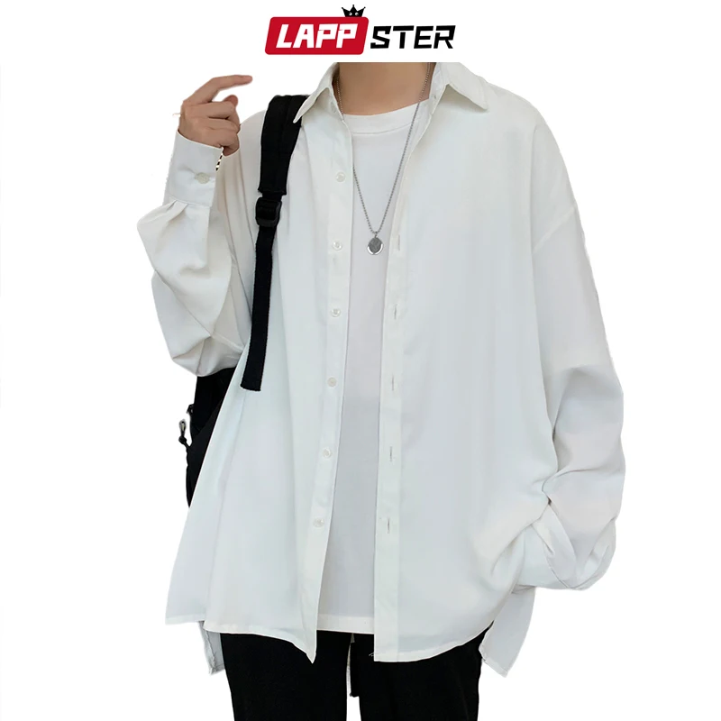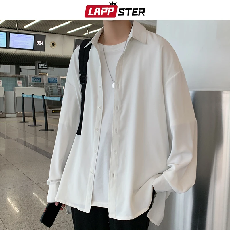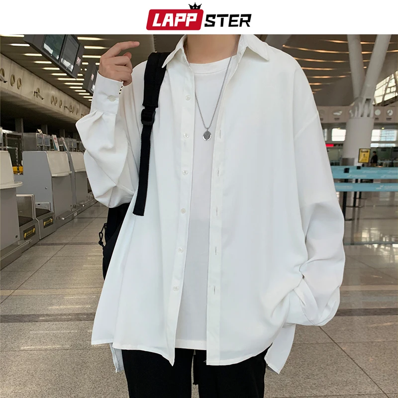 Рубашка LAPPSTER Мужская однотонная, винтажная одежда, на пуговицах, белая блузка в стиле Харадзюку, корейская мода, 2022