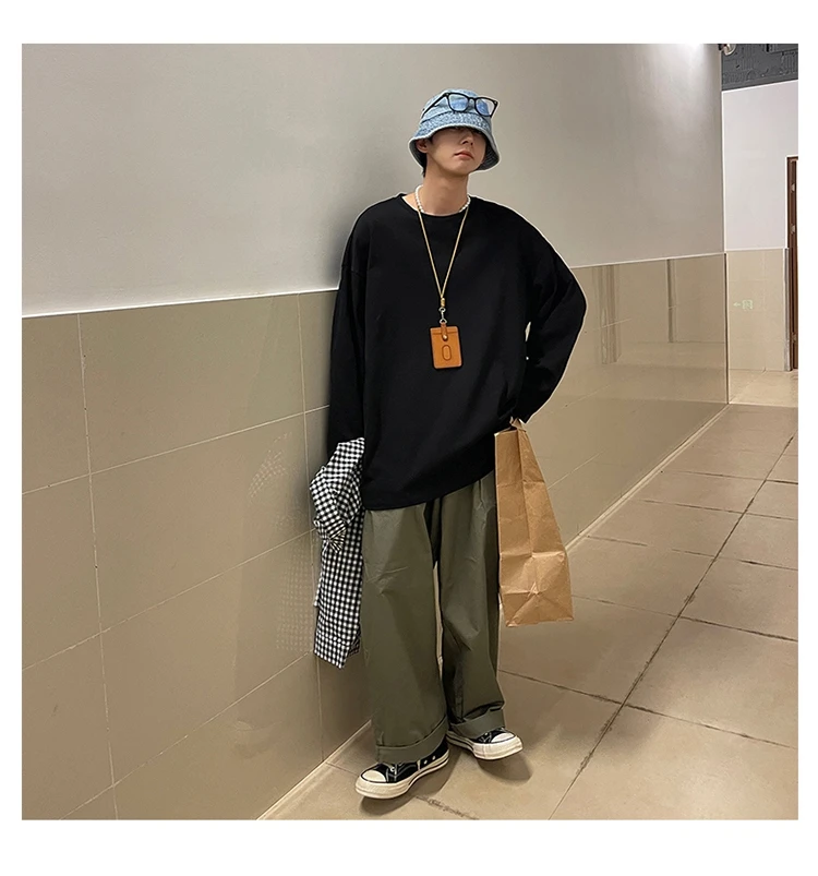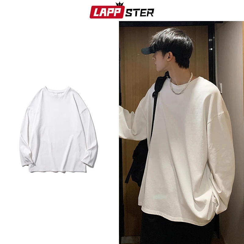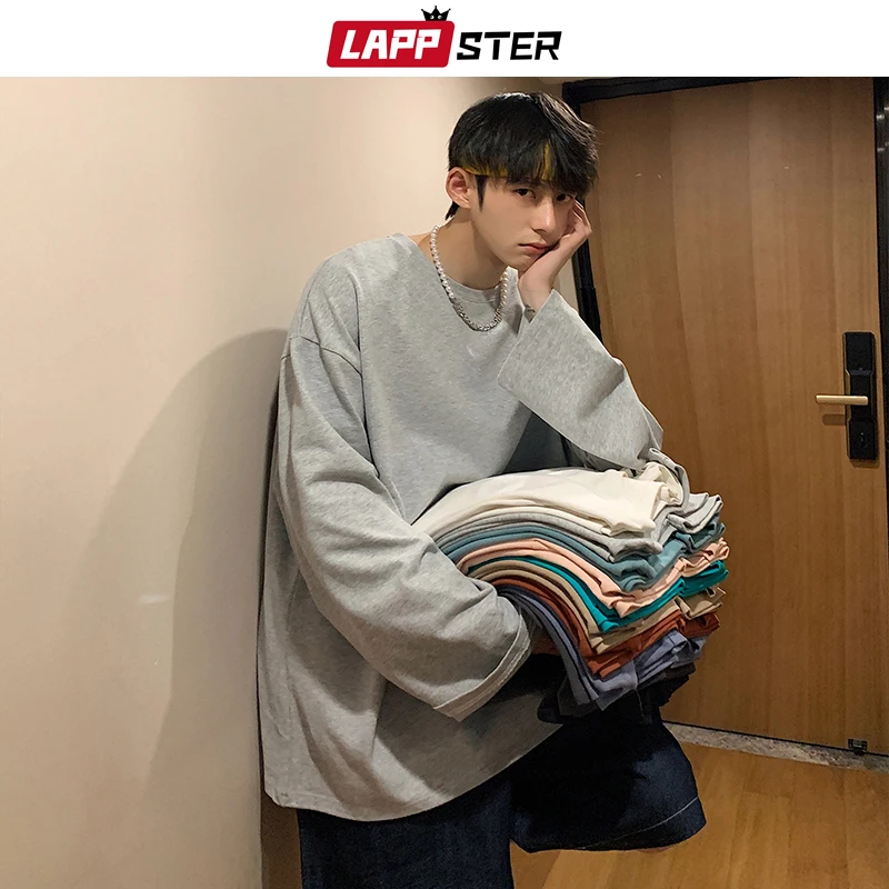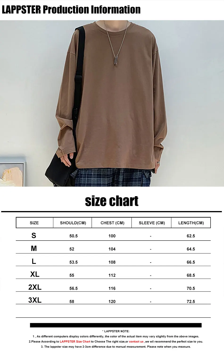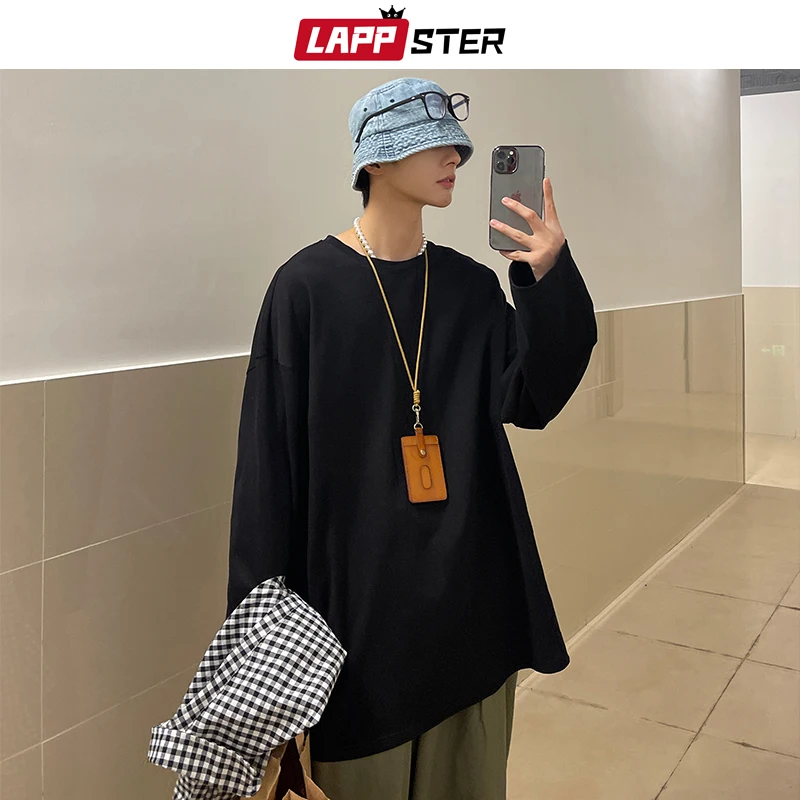 Футболка LAPPSTER мужская оверсайз, однотонная модная винтажная тенниска в стиле Харадзюку, черная рубашка, 2022